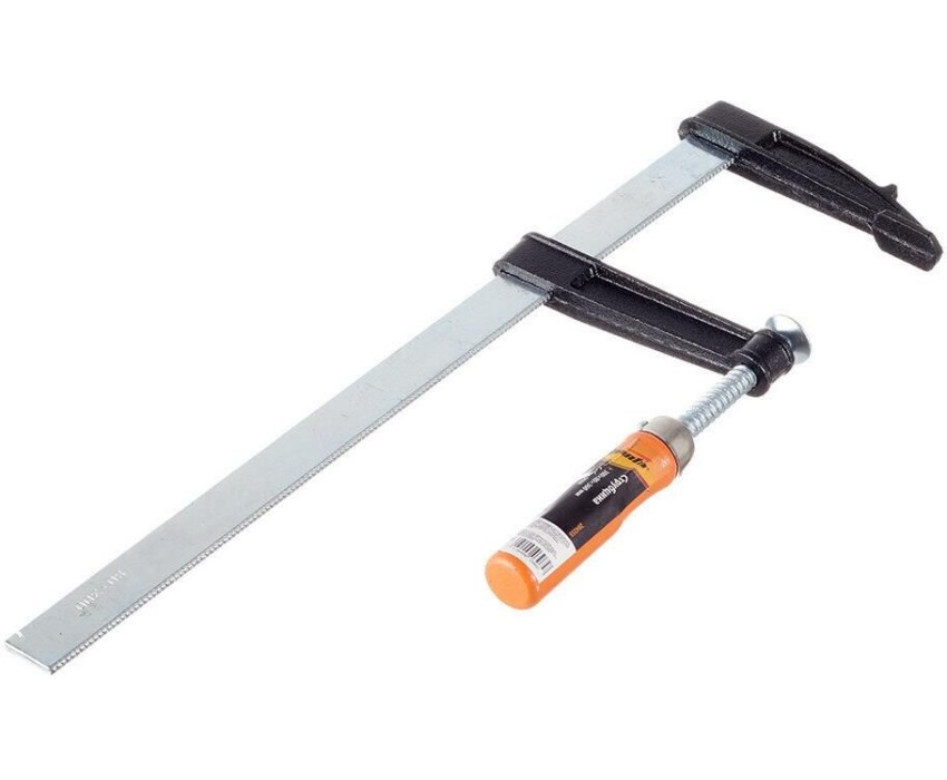 Предназначена для фиксации деталей при обработке и сборке. Один из кронштейнов установлен на направляющей жестко, другой перемещается для регулировки захвата и оснащен винтовым зажимом. Губки снабжены накладками для защиты обрабатываемых предметов от повреждений. Рукоятка деревянная.
