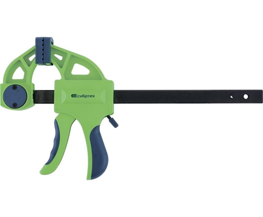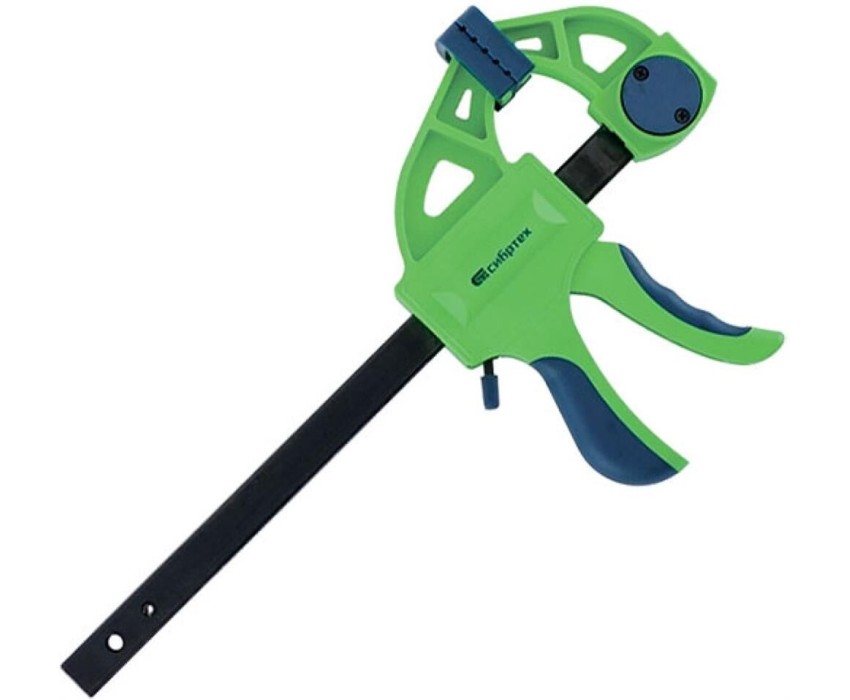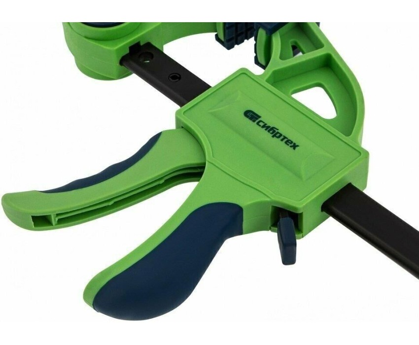 F-образная быстрозажимная струбцина Сибртех 20567 длиной 820 мм, с шириной и глубиной зажима 600 и 70 мм соответственно, в пластиковом корпусе, с фиксатором и двухкомпонентной рукояткой, позволяет зажимать заготовки для их дальнейшей обработки или сборки. Помогает решать множество задач благодаря оптимальной глубине зажима. Пластинчатый механизм пошагово перемещает подвижную губку вдоль направляющей до достижения максимально плотного захвата детали. Фиксатор препятствует движению губки в обратную сторону. Струбцина пригодится в столярной мастерской, а также будет полезна в быту.ПреимуществаНадежная конструкция — штанга изготовлена из стали, а корпус — из ударопрочного ABS-пластика.Аккуратная работа — накладки на губках защищают поверхность зажимаемого предмета от повреждений.Дополнительные возможности — опорную губку можно переставить на другой конец штанги, превратив струбцину в распорный инструмент.Комфортная работа — эргономичные двухкомпонентные рукоятки удобно ложатся в руку.