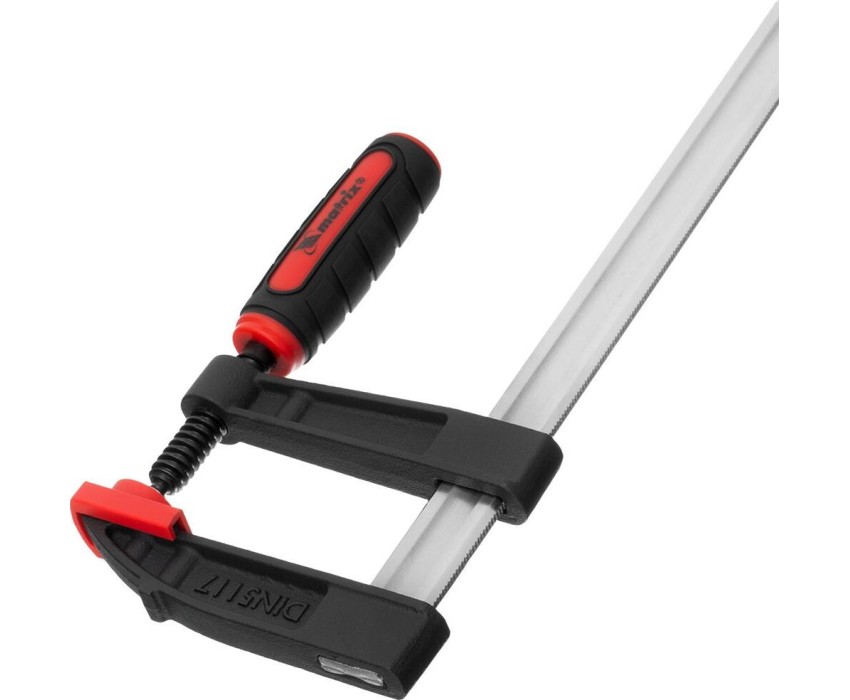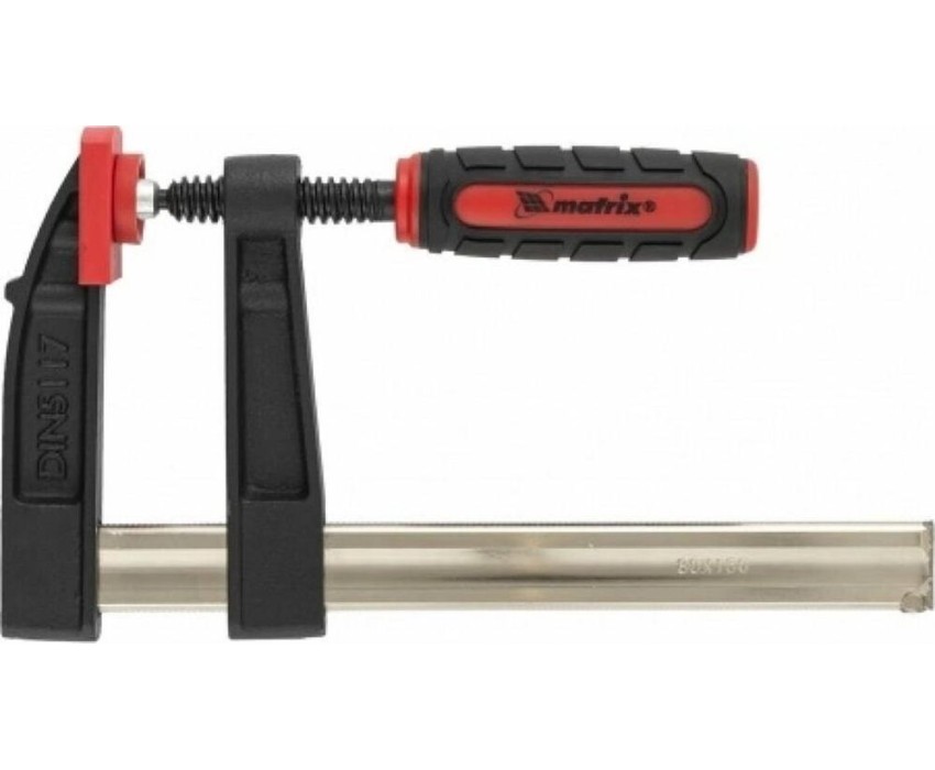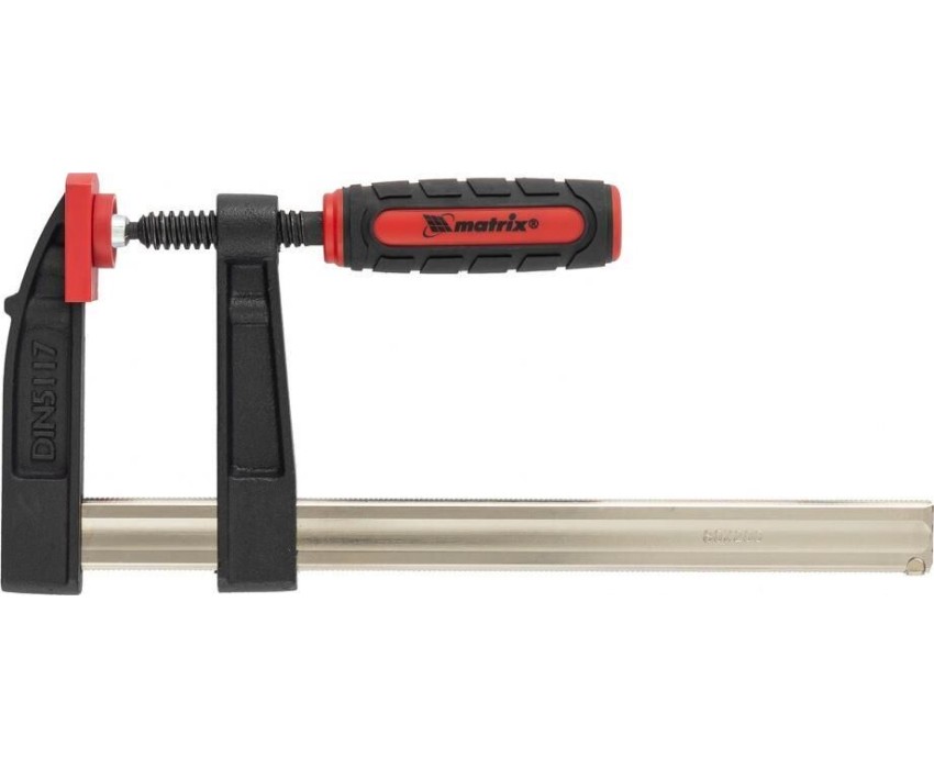 Усиленная F-образная струбцина Matrix 20401 размером 200 х 80 х 280 мм используется для зажима металлических, деревянных и других заготовок для их последующей обработки или сборки. Представляет собой штангу, на которой установлены 2 кронштейна — неподвижный и подвижный. Деталь помещается между ними и прижимается к губкам при помощи винтового зажима с трапециевидной резьбой. Величина захвата регулируется при помощи подвижного кронштейна и может достигать 200 мм. Струбцину используют для проведения слесарных и столярных работ. Металлическая конструкция выдерживает высокую температуру, поэтому инструмент пригодится для выполнения сварочных работ (перед началом необходимо снять пластиковые накладки с губок).ПреимуществаФиксация заготовок со значительным усилием — прочная стальная штанга выдерживает повышенные нагрузки.Аккуратная работа — пластиковые накладки на губках предохраняют поверхность детали от повреждения при сильном сжатии.Эргономичность — двухкомпонентная обрезиненная рукоятка с рельефным дизайном не выскальзывает из ладони.