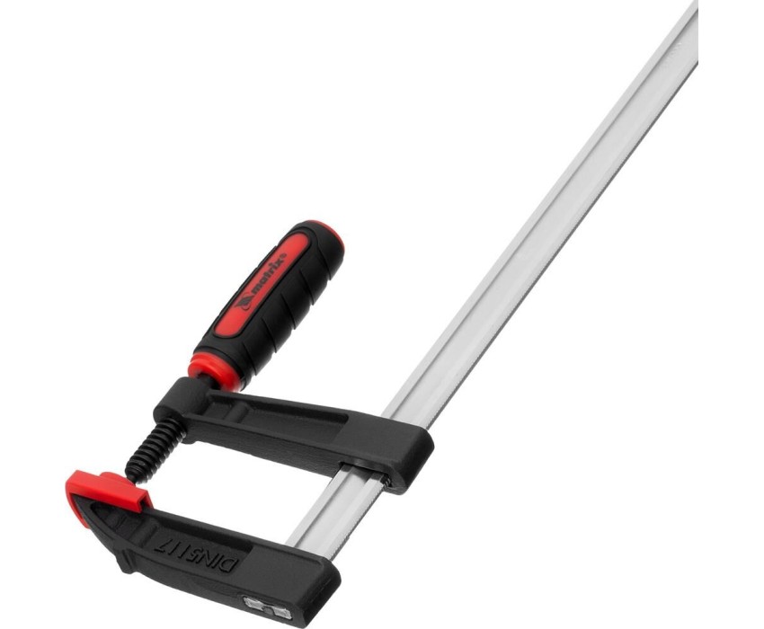 Усиленная F-образная струбцина Matrix 20406 размером 300 х 80 х 380 мм используется для зажима металлических, деревянных и других заготовок для их последующей обработки или сборки. Представляет собой штангу, на которой установлены 2 кронштейна — неподвижный и подвижный. Деталь помещается между ними и прижимается к губкам при помощи винтового зажима с трапециевидной резьбой. Величина захвата регулируется при помощи подвижного кронштейна и может достигать 300 мм. Струбцину используют для проведения слесарных и столярных работ. Металлическая конструкция выдерживает высокую температуру, поэтому инструмент пригодится для выполнения сварочных работ (перед началом необходимо снять пластиковые накладки с губок).ПреимуществаФиксация заготовок со значительным усилием — прочная стальная штанга выдерживает повышенные нагрузки.Аккуратная работа — пластиковые накладки на губках предохраняют поверхность детали от повреждения при сильном сжатии.Эргономичность — двухкомпонентная обрезиненная рукоятка с рельефным дизайном не выскальзывает из ладони.