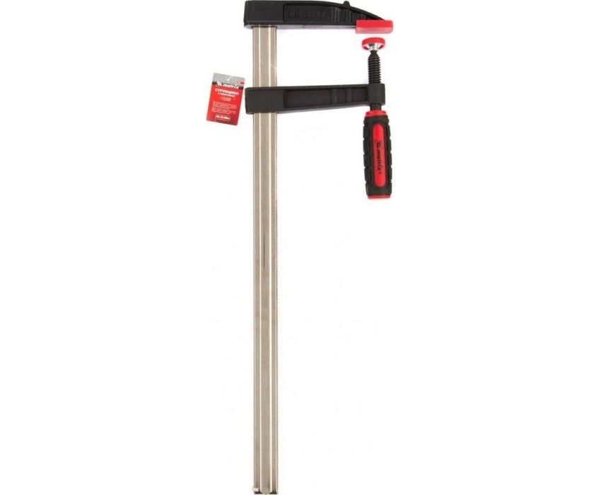 Усиленная F-образная струбцина Matrix 20409 размером 400 х 80 х 480 мм используется для зажима металлических, деревянных и других заготовок для их последующей обработки или сборки. Представляет собой штангу, на которой установлены 2 кронштейна — неподвижный и подвижный. Деталь помещается между ними и прижимается к губкам при помощи винтового зажима с трапециевидной резьбой. Величина захвата регулируется при помощи подвижного кронштейна и может достигать 400 мм. Струбцину используют для проведения слесарных и столярных работ. Металлическая конструкция выдерживает высокую температуру, поэтому инструмент пригодится для выполнения сварочных работ (перед началом необходимо снять пластиковые накладки с губок).ПреимуществаФиксация заготовок со значительным усилием — прочная стальная штанга выдерживает повышенные нагрузки.Аккуратная работа — пластиковые накладки на губках предохраняют поверхность детали от повреждения при сильном сжатии.Эргономичность — двухкомпонентная обрезиненная рукоятка с рельефным дизайном не выскальзывает из ладони.