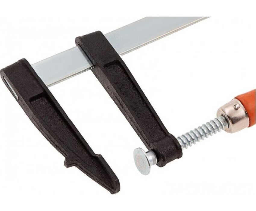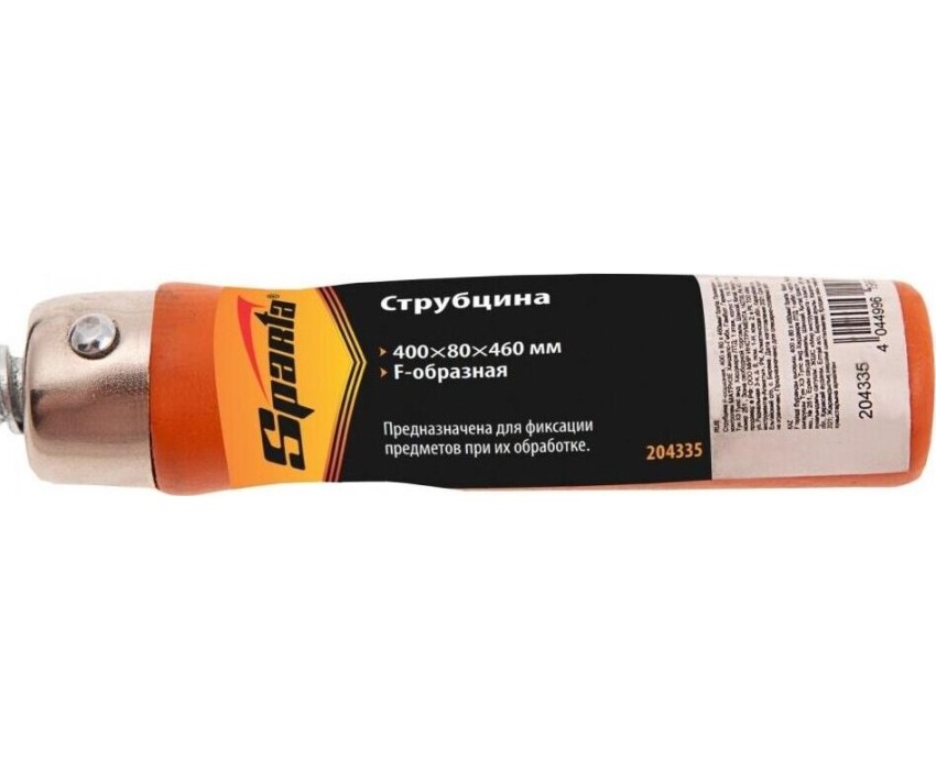 F-образная струбцина Sparta 204335, 400 х 80 х 460 мм, используется в столярном и слесарном деле и позволяет фиксировать заготовки из металла, древесины и других материалов для их соединения или обработки. Деталь помещают между губками, одна из которых подвижна и служит для регулировки величины захвата. Винтовой зажим позволяет прикладывать значительное усилие для надежной фиксации. Защитные накладки предотвращают повреждение детали. Элементы конструкции выдерживают высокую температуру, поэтому струбцина подходит для проведения сварочных работ, при этом пластиковые накладки необходимо снять.ПреимуществаШтанга изготовлена из стали, поэтому обладает повышенной устойчивостью к изгибанию и выдерживает значительные нагрузки.Оцинкованный винт устойчив к коррозии, что увеличивает срок службы инструмента.Удобная деревянная рукоятка надежно лежит в руке, что повышает комфортность работы.