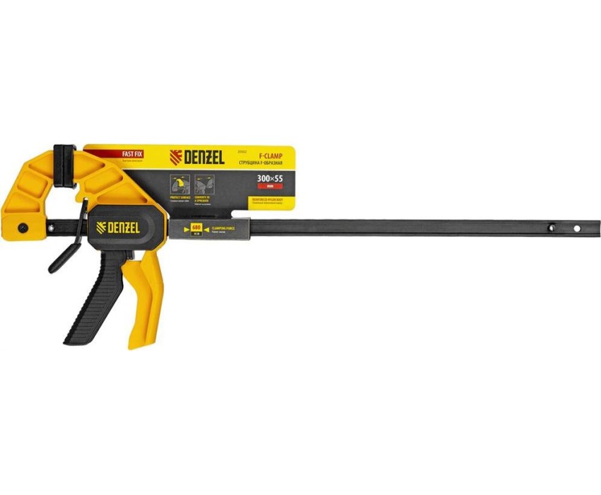 Струбцина DENZEL Струбцина F-образная, быстрозажимная, 300 х 55 мм, усиленный нейлоновый корпус 20502