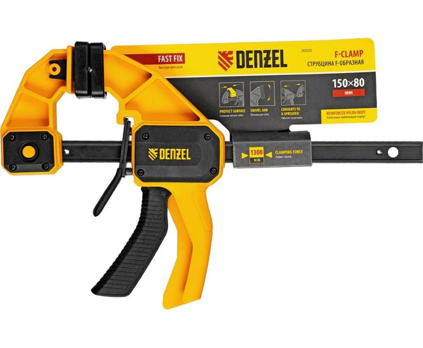 Струбцина DENZEL Струбцина F-образная, быстрозажимная, 150 х 80 мм, усиленный нейлоновый корпус 20505