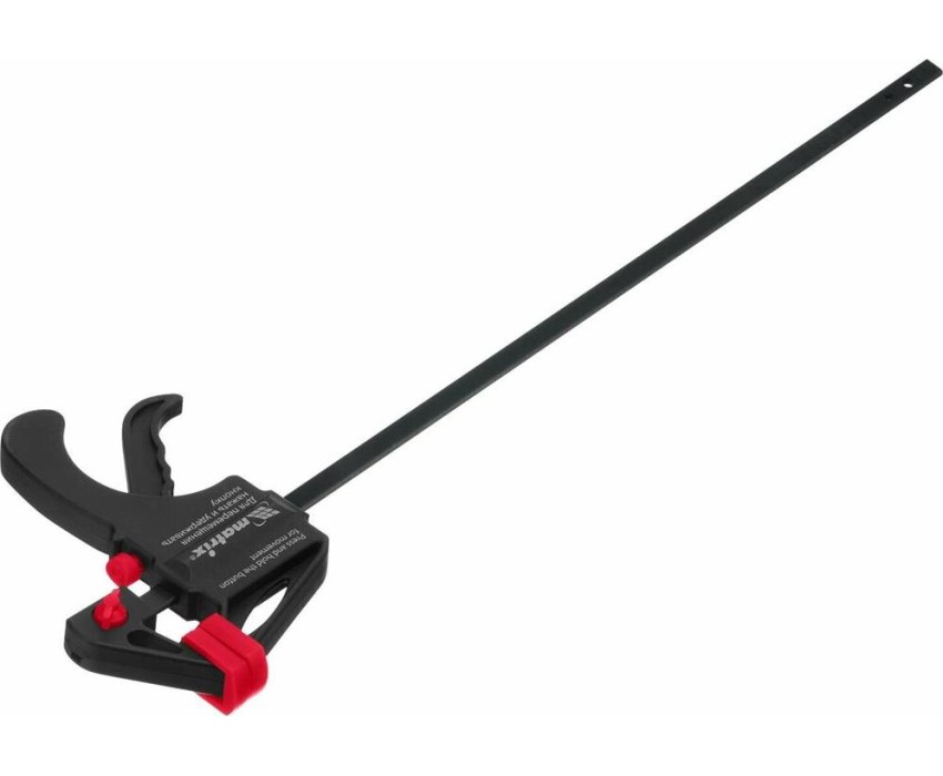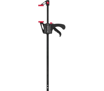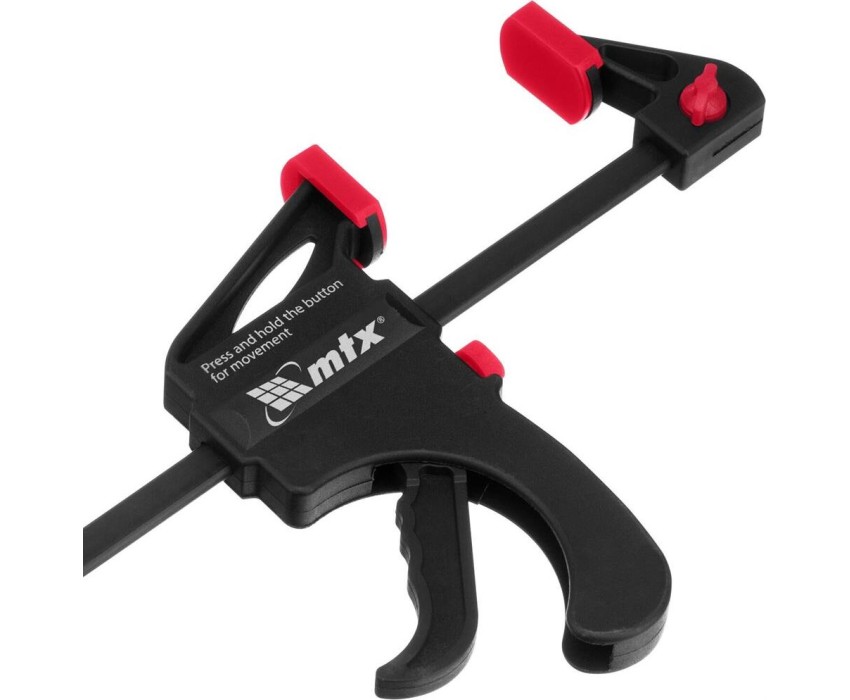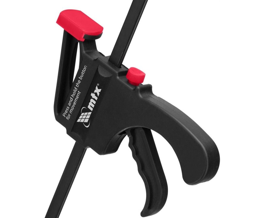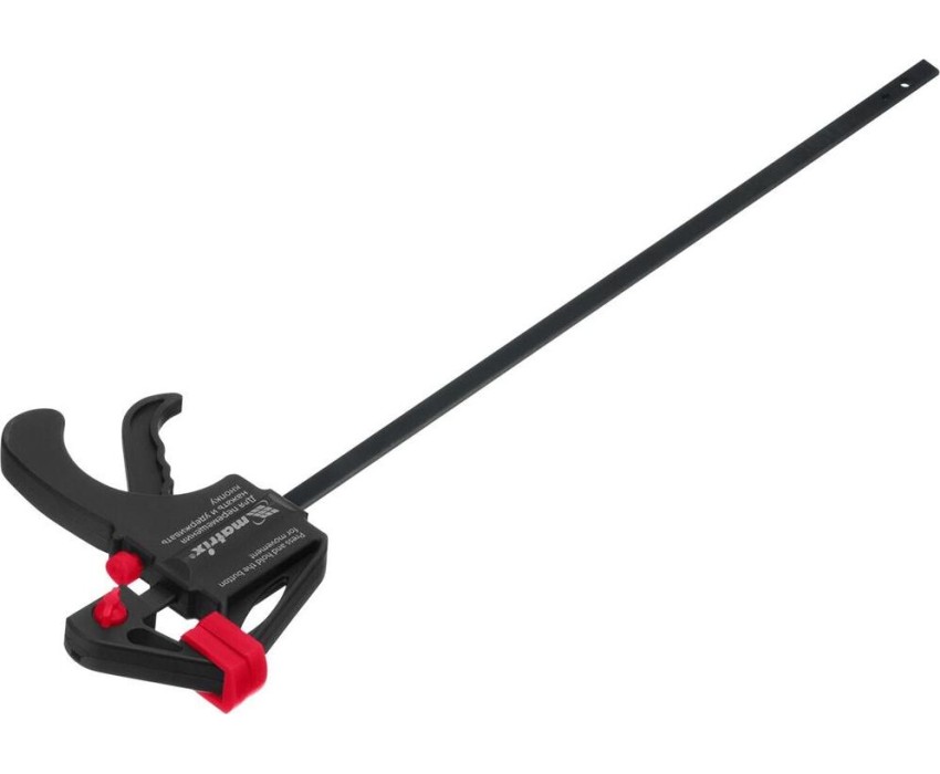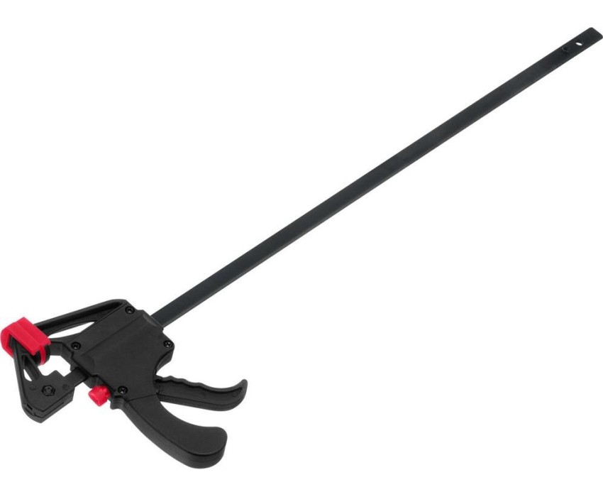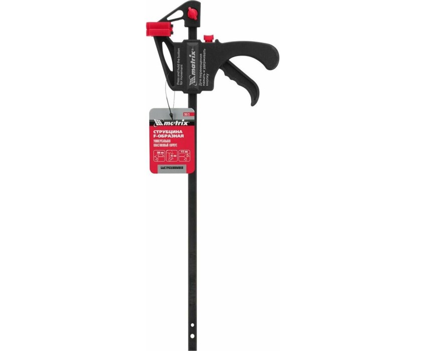 Универсальная F-образная быстрозажимная струбцина Matrix 20573 размером 300 х 415 х 45 мм, в пластиковом корпусе, используется в столярном деле. Позволяет быстро и надежно фиксировать заготовки с целью для последующего склеивания, сверления, шлифовки, пиления и другой обработки. Компактный размер упрощает работу с инструментом.ПреимуществаПростая конструкция — подвижная губка перемещается вдоль штанги при помощи пластинчатого механизма, а фиксатор препятствует разжиманию струбцины.Устойчивость к нагрузкам — направляющая изготовлена из стали и выдерживает значительные усилия при сжатии предметов.Долговечность — рабочие элементы из ударопрочного пластика устойчивы к механическим воздействиям.Аккуратная работа — защитные накладки на губках предохраняют зажимаемые детали от повреждений.Дополнительные возможности — можно установить опорную губку на противоположный конец штанги и использовать струбцину на разжим.