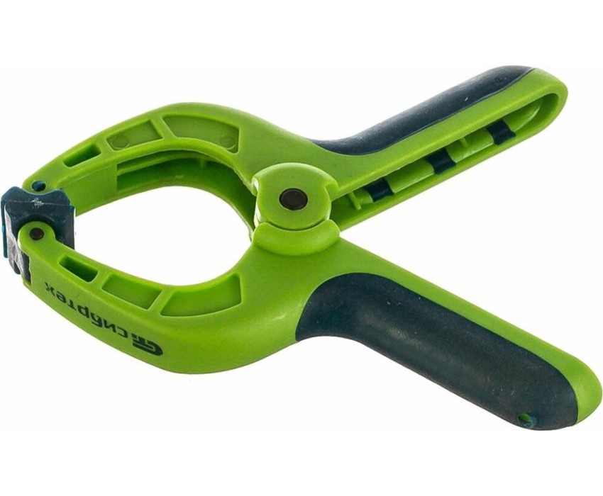 Струбцина клещеобразная Сибртех 20784 в пластиковом корпусе, с усиленной пружиной и 2-компонентными рукоятками, предназначена для зажимания предметов толщиной до 1-5/8", или 42 мм. Используется для легкой фиксации деталей, например, для склеивания или разметки. Струбцина подходит для выполнения столярных работ дома или в мастерской. Преимущества Захват предметов под разными углами — прижимные накладки закреплены на шарнирах. Долговечность — корпус из ударопрочного пластика устойчив к нагрузкам. Комфортная работа — обрезиненные рукоятки не выскальзывают из ладони.