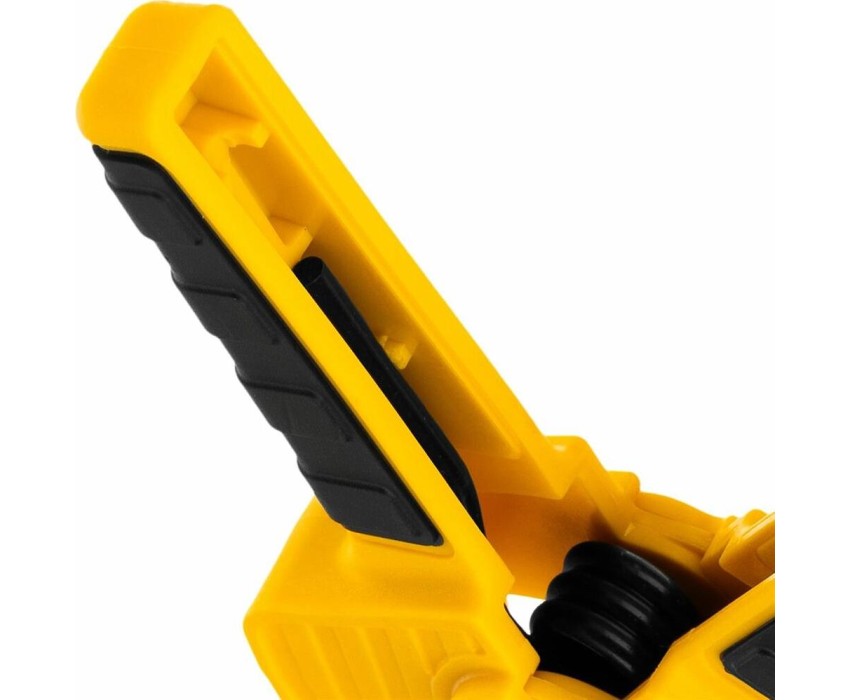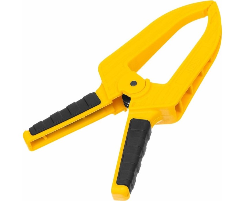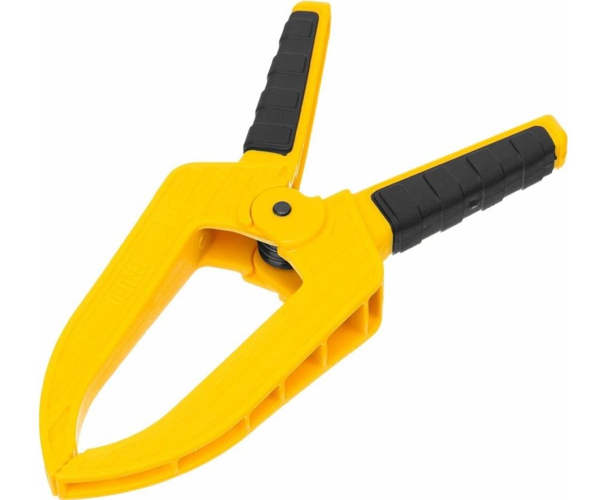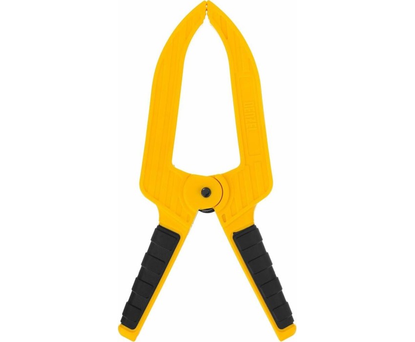 Струбцина клещеобразная удлиненная Denzel 20789 с глубиной зажима 80 мм, с двухкомпонентными рукоятками, способна удерживать детали толщиной до 50 мм. Будет полезна при склеивании или разметке заготовок. Подвижные губки с углублениями на прижимных поверхностях позволяют максимально точно позиционировать деталь при захвате. Струбцина пригодится в столярной мастерской, дома или на даче.ПреимуществаНадежность и долговечность — корпус из ударопрочного пластика усилен ребрами жесткости, поэтому выдерживает значительные нагрузки при сжатии.Надежная фиксация — усиленная пружина позволяет крепко удерживать обрабатываемую деталь.Комфортная работа — двухкомпонентные рукоятки с рельефной поверхностью обеспечивают надежный захват.