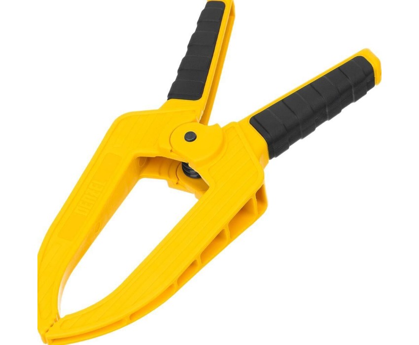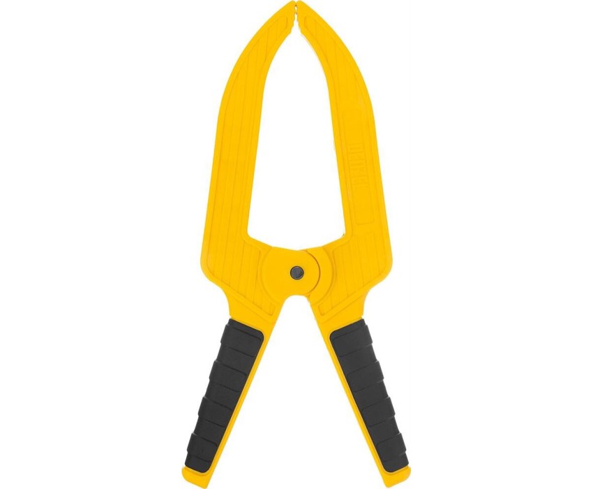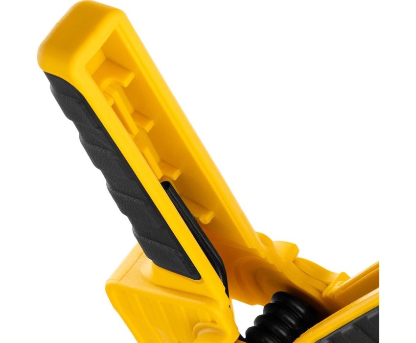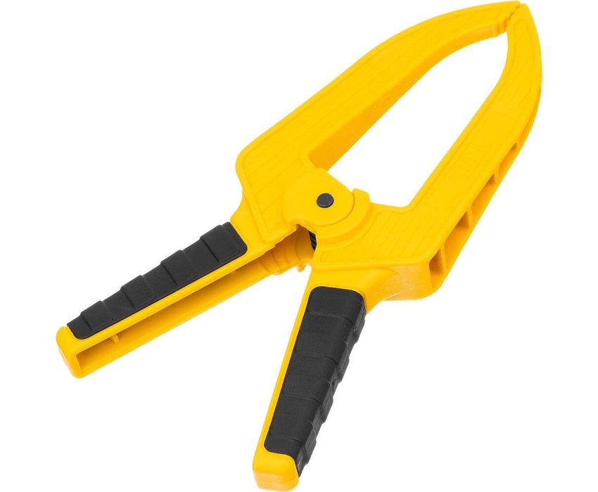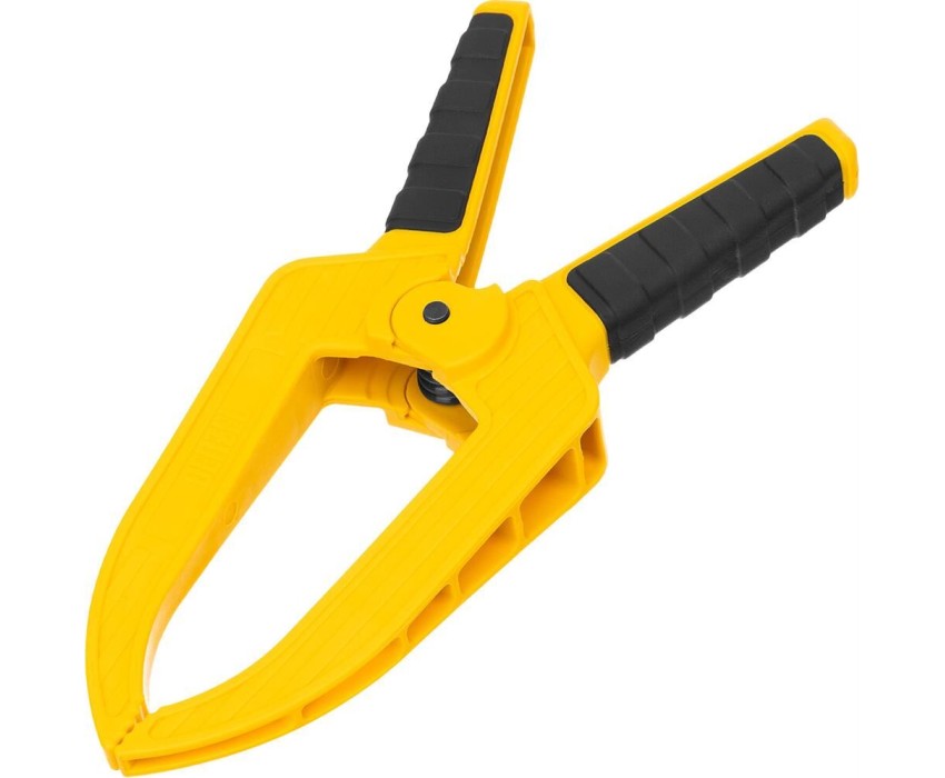 Струбцина клещеобразная удлиненная Denzel 20790 с глубиной зажима 110 мм, с двухкомпонентными рукоятками, способна удерживать детали толщиной до 75 мм. Будет полезна при склеивании или разметке заготовок. Подвижные губки с углублениями на прижимных поверхностях позволяют максимально точно позиционировать деталь при захвате. Струбцина пригодится в столярной мастерской, дома или на даче.ПреимуществаНадежность и долговечность — корпус из ударопрочного пластика усилен ребрами жесткости, поэтому выдерживает значительные нагрузки при сжатии.Надежная фиксация — усиленная пружина позволяет крепко удерживать обрабатываемую деталь.Комфортная работа — двухкомпонентные рукоятки с рельефной поверхностью обеспечивают надежный захват.