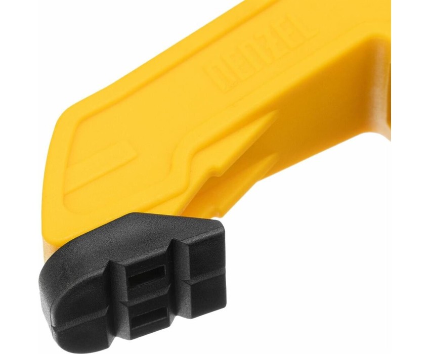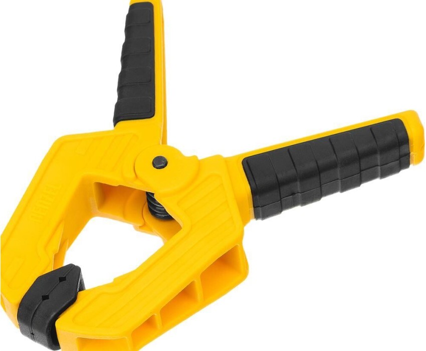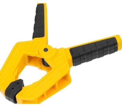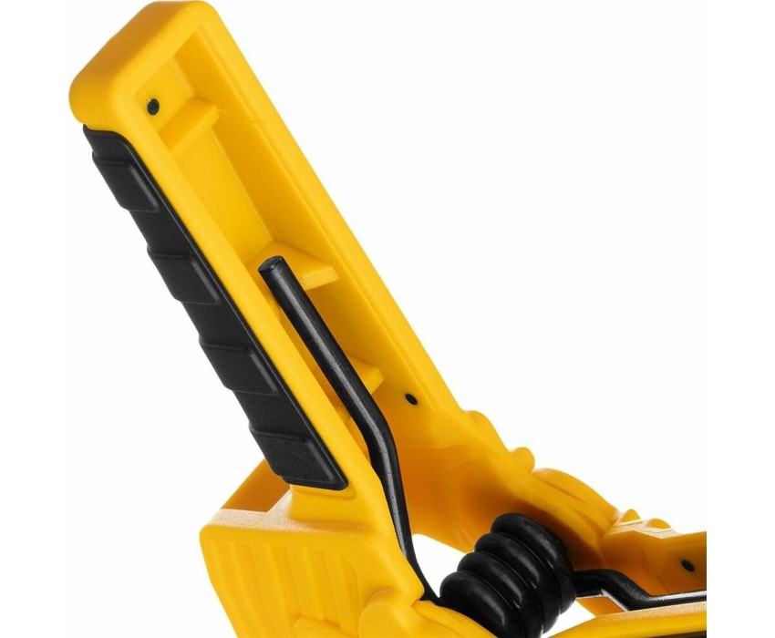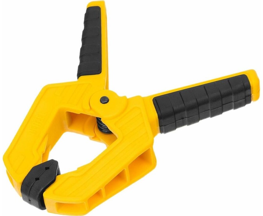 Струбцина клещеобразная удлиненная Denzel 20795 с глубиной зажима 35 мм, с двухкомпонентными рукоятками, способна удерживать детали толщиной до 50 мм. Будет полезна при склеивании или разметке заготовок. Подвижные губки с углублениями на прижимных поверхностях позволяют максимально точно позиционировать деталь при захвате. Струбцина пригодится в столярной мастерской, дома или на даче.ПреимуществаНадежность и долговечность — корпус из ударопрочного пластика усилен ребрами жесткости, поэтому выдерживает значительные нагрузки при сжатии.Надежная фиксация — усиленная пружина позволяет крепко удерживать обрабатываемую деталь.Комфортная работа — двухкомпонентные рукоятки с рельефной поверхностью обеспечивают надежный захват.