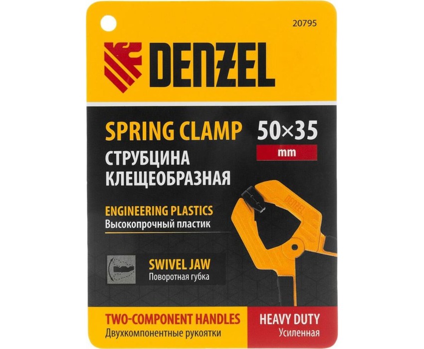 Струбцина DENZEL Струбцина клещеобразная, усиленная 50 х 35 мм, двухкомпонентные рукоятки 20795