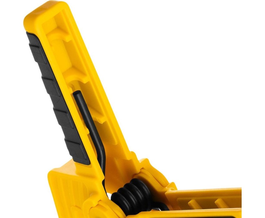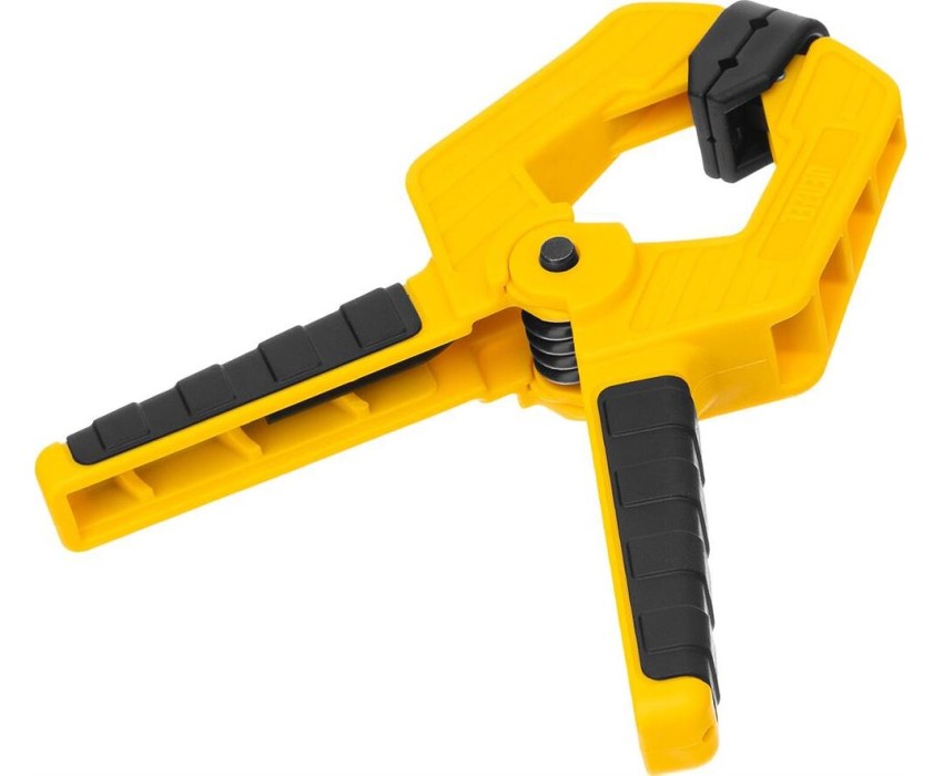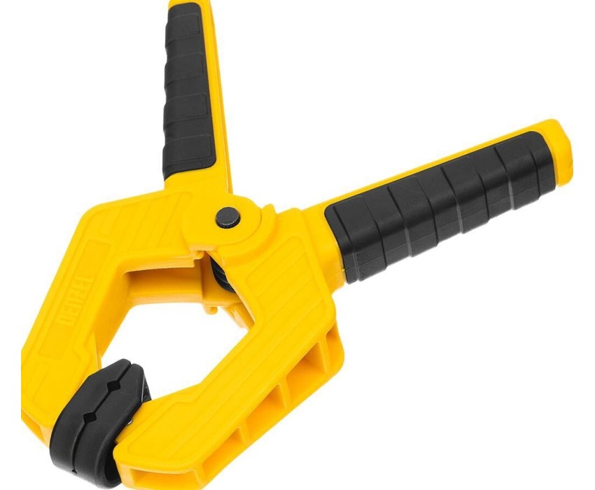Струбцина клещеобразная удлиненная Denzel 20796 с глубиной зажима 50 мм, с двухкомпонентными рукоятками, способна удерживать детали толщиной до 65 мм. Будет полезна при склеивании или разметке заготовок. Подвижные губки с углублениями на прижимных поверхностях позволяют максимально точно позиционировать деталь при захвате. Струбцина пригодится в столярной мастерской, дома или на даче.ПреимуществаНадежность и долговечность — корпус из ударопрочного пластика усилен ребрами жесткости, поэтому выдерживает значительные нагрузки при сжатии.Надежная фиксация — усиленная пружина позволяет крепко удерживать обрабатываемую деталь.Комфортная работа — двухкомпонентные рукоятки с рельефной поверхностью обеспечивают надежный захват.