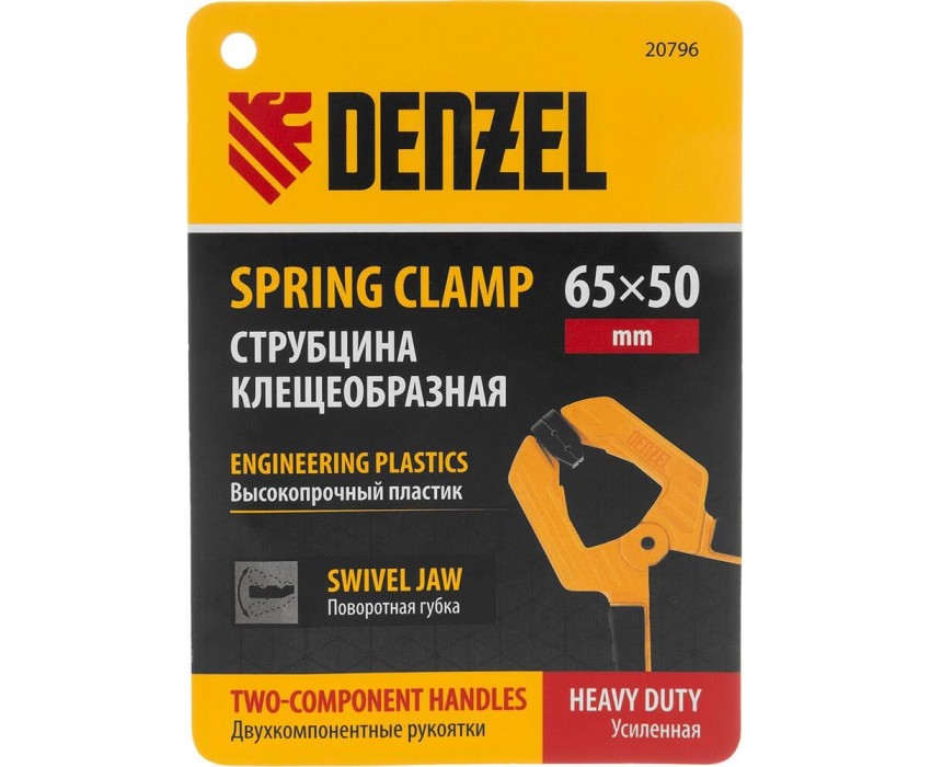 Струбцина DENZEL Струбцина клещеобразная, усиленная 65 х 50 мм, двухкомпонентные рукоятки 20796