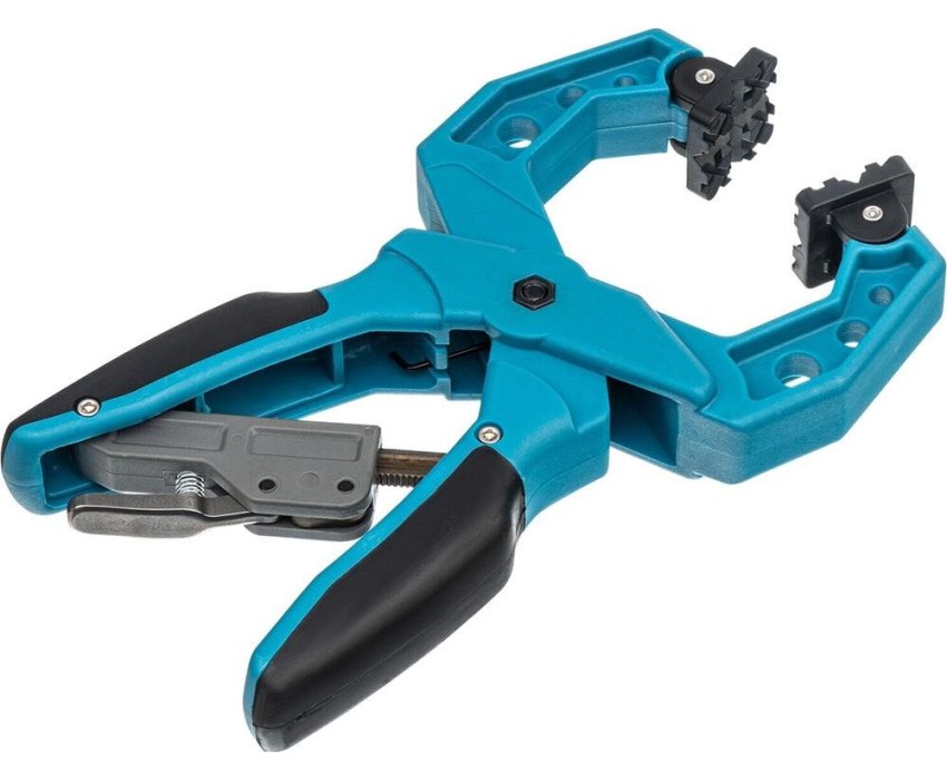 Клещеобразная струбцина Gross 20803 в пластиковом корпусе, с храповым механизмом жесткой фиксации, используется для фиксирования деталей толщиной 2-1/4 дюйма / 58 мм при их скреплении и обработке. Позволяет зажимать и удерживать заготовки из древесины и других материалов. Благодаря надежному металлическому храповому механизму губки жестко фиксируют предметы, что отличает данную модель от струбцин прищепочного типа на пружинах. Инструмент предназначен для профессионального использования.ПреимуществаБлагодаря шарнирному креплению прижимных насадок сжимаемые детали можно устанавливать под разными углами.Корпус выполнен из высокопрочного стеклопластика, поэтому выдерживает повышенные нагрузки.Курковый фиксатор обеспечивает моментальное раскрытие струбцины, что облегчает работу с ней.Двухкомпонентные рукоятки удобно лежат в руке, что повышает комфортность работы.Инструмент произведен на фирменном заводе в Тайване и обладает гарантированно высоким качеством.