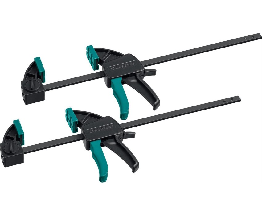 Профессиональный набор быстрозажимных пистолетных струбцин KRAFTOOL 2X для широкого спектра работ. Прочный армированный фиберглассом корпус и закалённая рейка позволяют зажимать заготовки с усилием 700 Н. Работа на сжатие и в распор. Бережная работа с деликатными материалами благодаря мягким сменным накладкам из TPU. Преимущества Полиамидный корпус армированный фиберглассом. Индукционная закалка рейки. Усилие на сжатие 70кгс (700 Н) Противоскользящие мягкие защитные накладки на губки из термопластичного полиуретана (TPU). Надежный инновационный механизм перестановки губки для работы на сжатие / в распор. Рычаг для быстрого снятия струбцины. Использование Применяется для фиксации и удержания деталей при выполнении столярных и сле-сарных работ.