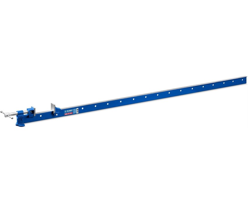 Прочные струбцины с Т-образным профилем ″T-Bar Clamp″ (ваймы) для сжатия с усилием. Головки из высокопрочного чугуна с шаровидным графитом. Т-образная стальная направляющая с сечением 50х20 мм Использование в качестве пресса для склейки деталей. Глубина зажима 42 мм. Ширина зажимных губок 45 мм Винт и фиксаторы из высококачественной стали. Для профессионального использования. Преимущества Головки из высокопрочного чугуна с шаровидным графитом. Глубина зажима 42 мм. Использование в качестве пресса для склейки деталей. Возможность жесткой фиксации на верстаке. Использование Применяется для фиксации и удержания деталей при выполнении столярных и сле-сарных работ.