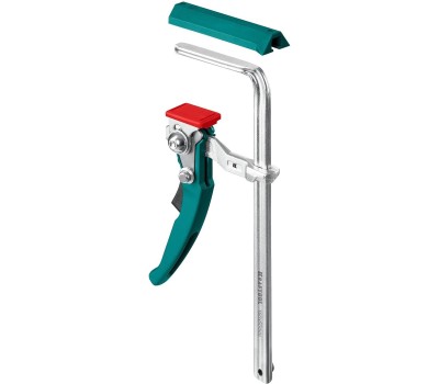 Профессиональный инструмент для надежной фиксации направляющих шин, установки в Т-образные пазы 6х11 мм (T-Track), различного крепления в стандартные отверстия столярного верстака (dog holes Ø 19 мм). Цельнокованная мегапрочная направляющая рейка. Надежный храповый механизм с эксцентриковым зажимом. Сила сжатия 180 кг. Жесткая конструкция рамы. Мягкая накладка на прижимную площадку для деликатного зажима. Сохраняет силу зажима даже при воздействии вибрации. Подходит для применения в машинной среде. Возможна работа одной рукой. Продуманная система снятия зажима даже при экстримальном сжатии. Для профессионального использования. Преимущества Рычажный механизм: быстрый, мощный зажим Надежный храповый механизм с эксцентриковым зажимом. Сила сжатия 180 кг. Жесткая конструкция рамы. Мягкая накладка на прижимную площадку для деликатного зажима. Сохраняет силу зажима даже при воздействии вибрации. Подходит для применения в машинной среде. Возможна работа одной рукой. Продуманная система снятия зажима даже при экстримальном сжатии. Для профессионального использования. Использование Применяется для фиксации и удержания деталей при выполнении столярных и сле-сарных работ.