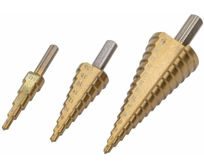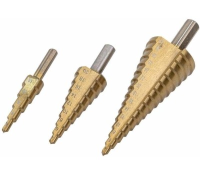 Сверло KRANZ (KR-12-6620) Набор ступенчатых сверл, 4-12,4-20,4-32мм, HSS-TiN, ТИТАН, 3 шт.