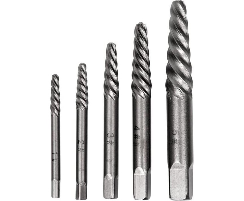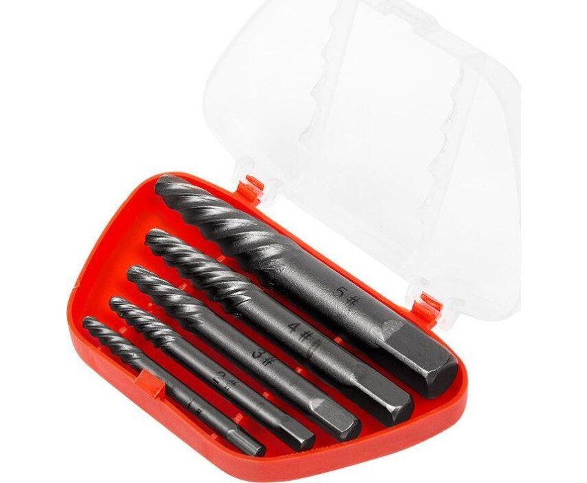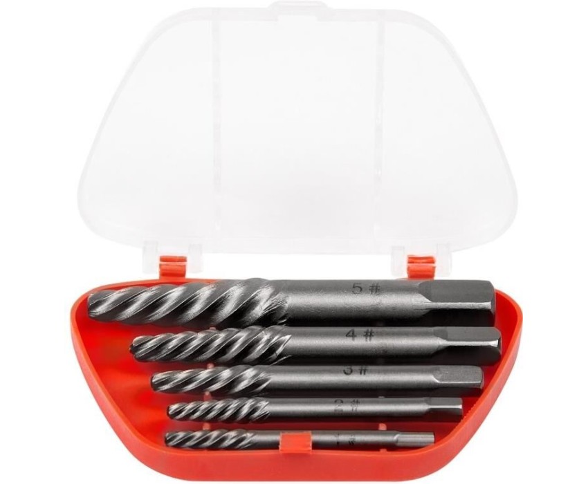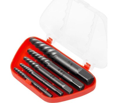 Набор экстракторов – это комплект специальных инструментов, созданных для удаления поврежденных или застрявших шурупов. Набор состоит из пяти экстракторов разных размеров, что позволяет использовать их для различных типов и размеров шурупов. Экстракторы изготовлены из легированной инструментальной стали, что обеспечивает их прочность и долговечность. Каждый экстрактор имеет специальную спиральную форму, которая позволяет легко вкрутить его в поврежденный шуруп. Типоразмеры экстракторов: № 1 (М3-М6); № 2 (М6-М8); № 3 (М8-М11); № 4 (М11-М14); № 5 (М14-М18).