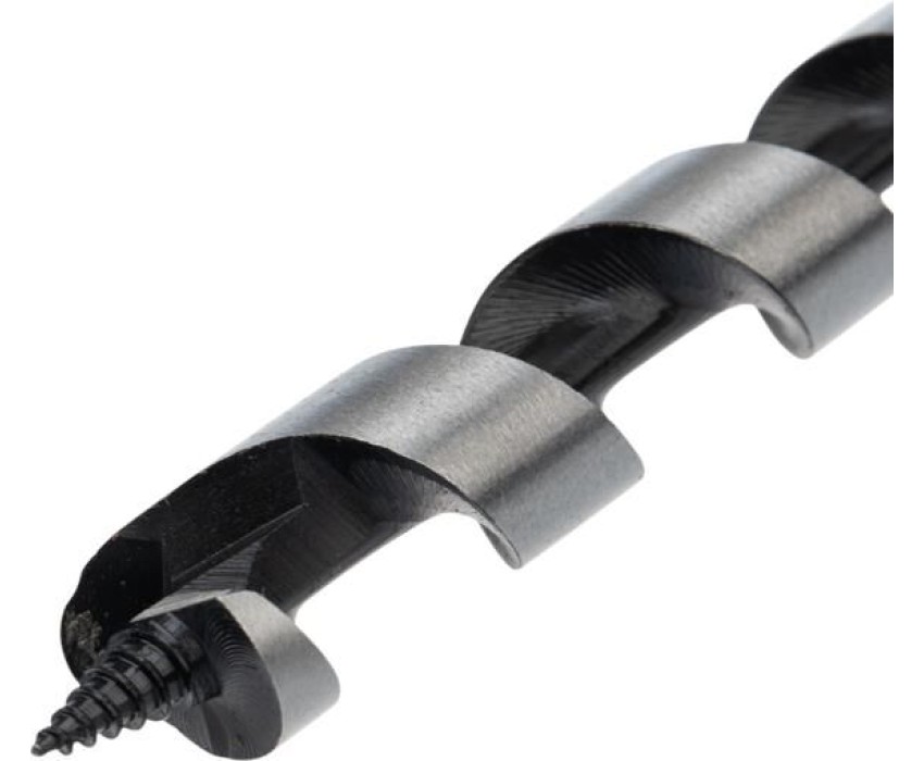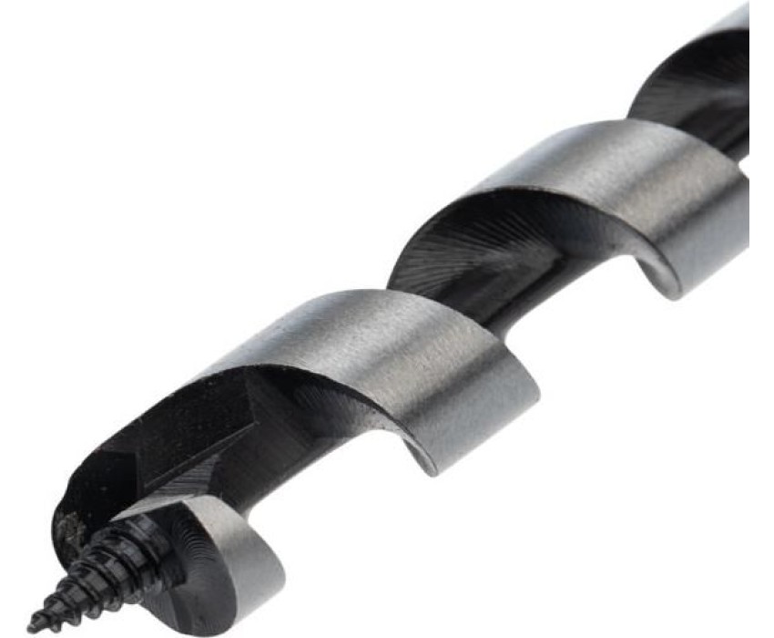 Винтовое сверло предназначено для сверления отверстий под нагели, дюбели. Используется при выполнении строительных, ремонтных и столярных работ. Сверло выполнено из закаленной инструментальной стали, что повышает износостойкость и долговечность инструмента. Центрирующее острие на конце рабочей части позволяет удобно засверливаться в материал и уменьшает осевую нагрузку, шнековая спираль Левиса обработана до зеркального блеска, из-за чего отверстия получаются гладкими, а стружка отводится более эффективно. Хвостовая часть, выполненная в виде шестигранника, надежно фиксирует сверло в патроне инструмента. Устанавливается на дрель или шуруповерт с высоким крутящим моментом.
