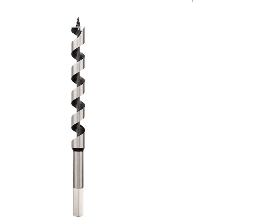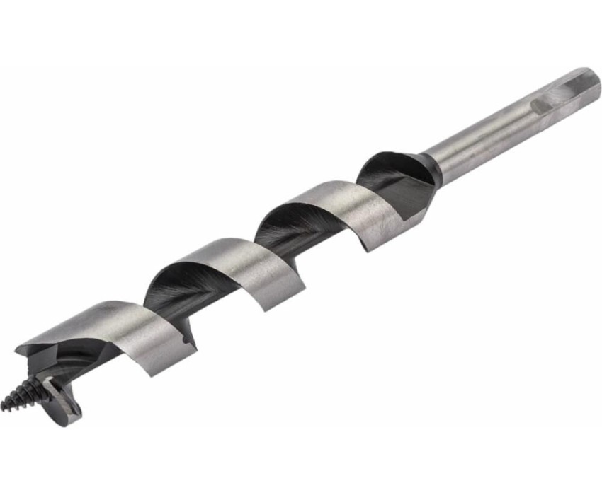Винтовое сверло предназначено для сверления отверстий под нагели, дюбели. Используется при выполнении строительных, ремонтных и столярных работ. Сверло выполнено из закаленной инструментальной стали, что повышает износостойкость и долговечность инструмента. Центрирующее острие на конце рабочей части позволяет удобно засверливаться в материал и уменьшает осевую нагрузку, шнековая спираль Левиса обработана до зеркального блеска, из-за чего отверстия получаются гладкими, а стружка отводится более эффективно. Хвостовая часть, выполненная в виде шестигранника, надежно фиксирует сверло в патроне инструмента. Устанавливается на дрель или шуруповерт с высоким крутящим моментом.