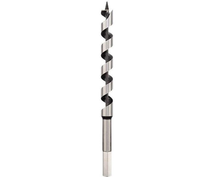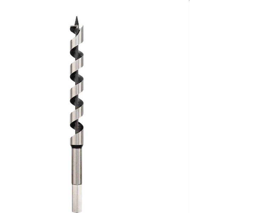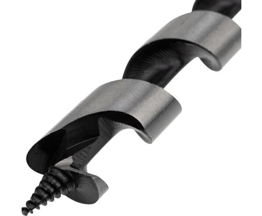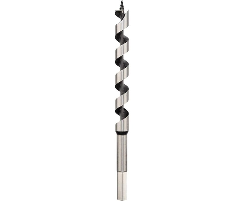 Винтовое сверло предназначено для сверления отверстий под нагели, дюбели. Используется при выполнении строительных, ремонтных и столярных работ. Сверло выполнено из закаленной инструментальной стали, что повышает износостойкость и долговечность инструмента. Центрирующее острие на конце рабочей части позволяет удобно засверливаться в материал и уменьшает осевую нагрузку, шнековая спираль Левиса обработана до зеркального блеска, из-за чего отверстия получаются гладкими, а стружка отводится более эффективно. Хвостовая часть, выполненная в виде шестигранника, надежно фиксирует сверло в патроне инструмента. Устанавливается на дрель или шуруповерт с высоким крутящим моментом.
