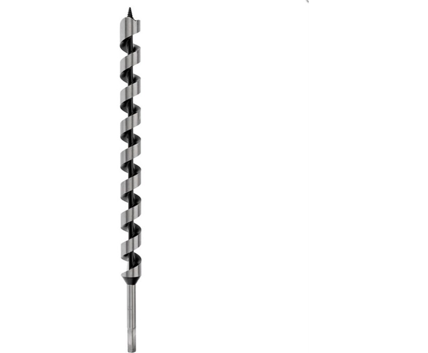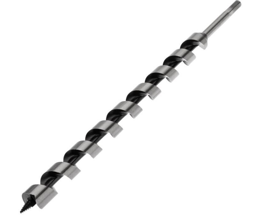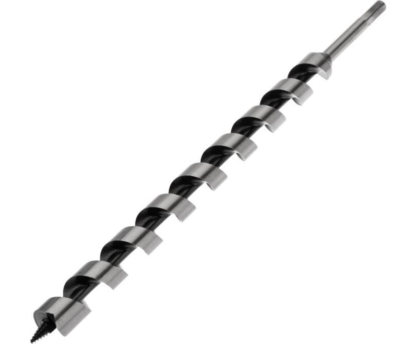 Винтовое сверло предназначено для сверления отверстий под нагели, дюбели. Используется при выполнении строительных, ремонтных и столярных работ. Сверло выполнено из закаленной инструментальной стали, что повышает износостойкость и долговечность инструмента. Центрирующее острие на конце рабочей части позволяет удобно засверливаться в материал и уменьшает осевую нагрузку, шнековая спираль Левиса обработана до зеркального блеска, из-за чего отверстия получаются гладкими, а стружка отводится более эффективно. Хвостовая часть, выполненная в виде шестигранника, надежно фиксирует сверло в патроне инструмента. Устанавливается на дрель или шуруповерт с высоким крутящим моментом.