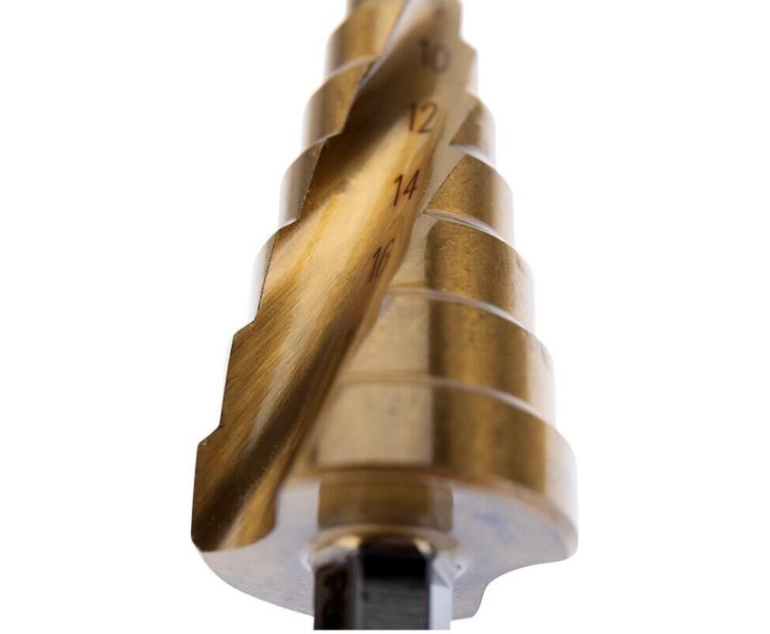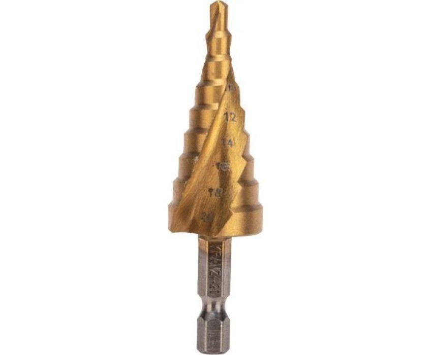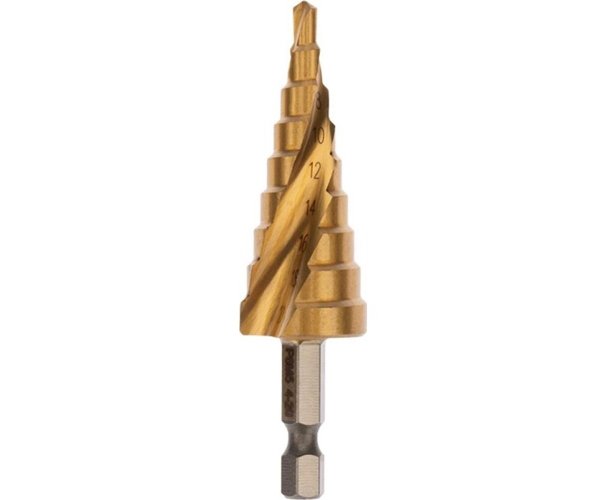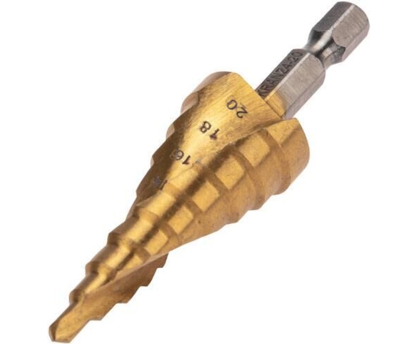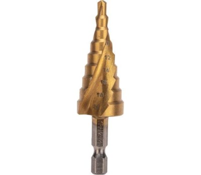 Сверло KRANZ (KR-12-6611) Сверло по металлу ступенчатое ТИТАН 4,0-20,0мм, 76мм, 65 HRC, Р6М5 TiN