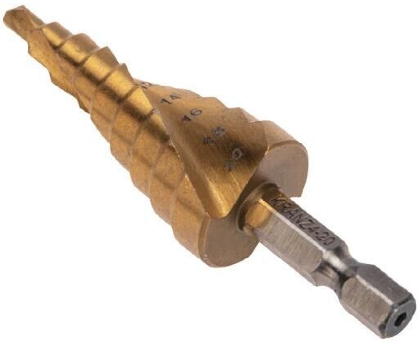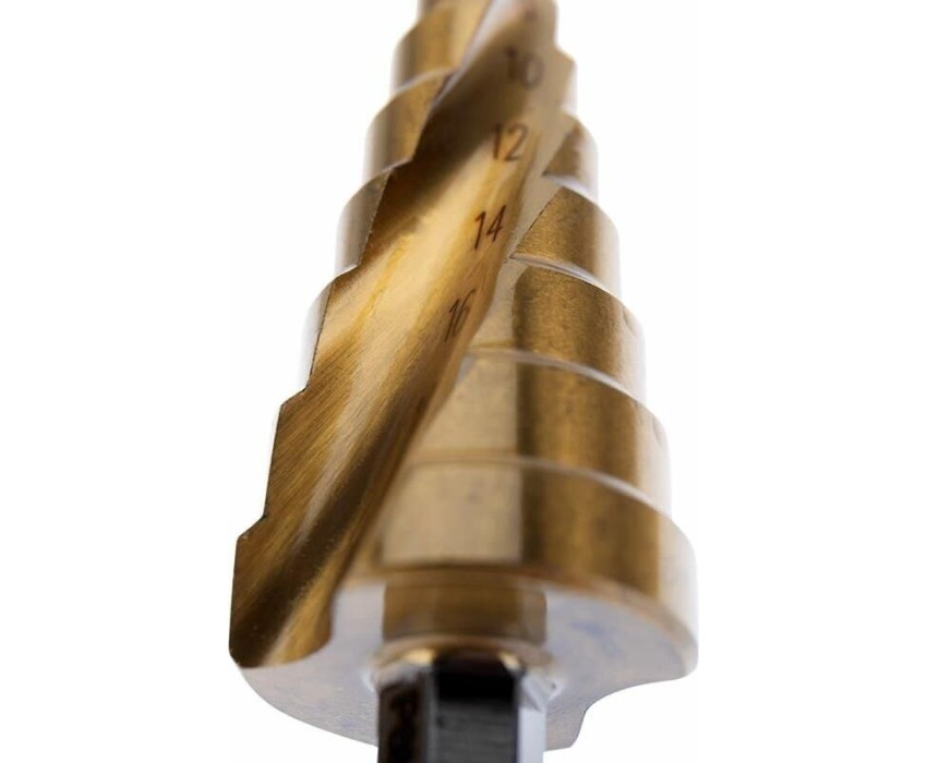Ступенчатое сверло KRANZ применяется при выполнении монтажно-сборочных работ для сверления отверстий различных диаметров без перестановки режущего инструмента. Применяется в работе с такими материалами, как пластик, дерево, металл и др. Благодаря своей уникальной конструкции изделие заменяет целый набор традиционных спиральных сверл. Использование оснастки позволяет сэкономить время мастера, так как не требует предварительного кернения и сверления. Шестигранный хвостовик Е6,3 обеспечивает надежную фиксацию сверла во всех типах патронов шуруповертов и дрелей. Форма канавки – спиральная. На каждой из 9 ступеней сверла нанесена маркировка фактического диаметра. Диапазон ступеней: 4, 6, 8, 10, 12, 14, 16, 18, 20 (шаг 2 мм). Сверло изготовлено из стали М2 (Р6М5) и обладает высокой прочностью, а также устойчивостью к динамическим нагрузкам и перегреву. Покрытие из нитрида титана (TiN) обеспечивает стойкость инструмента к коррозии и перегреву при сверлении.