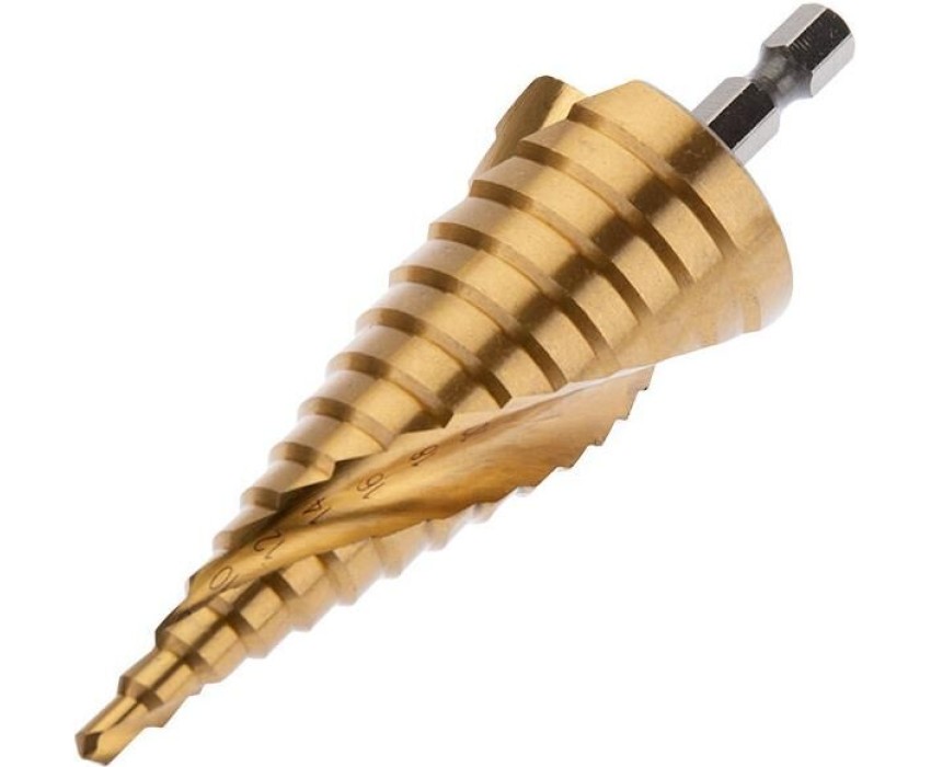 Сверло KRANZ (KR-12-6613) Сверло по металлу ступенчатое ТИТАН 4,0-32,0мм, 102мм, 65 HRC, Р6М5 TiN