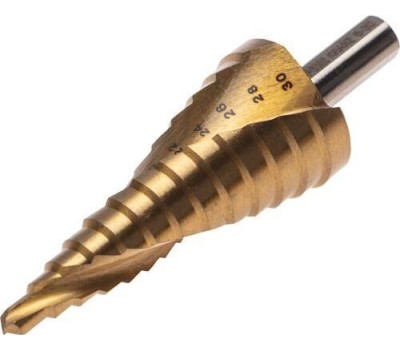 Сверло KRANZ (KR-12-6616) Сверло ступенчатое, 6-8-10-12-14-16-18-20-22-24-26-28-30мм, Р6М5, ТИТАН, трехгр.хвостовик