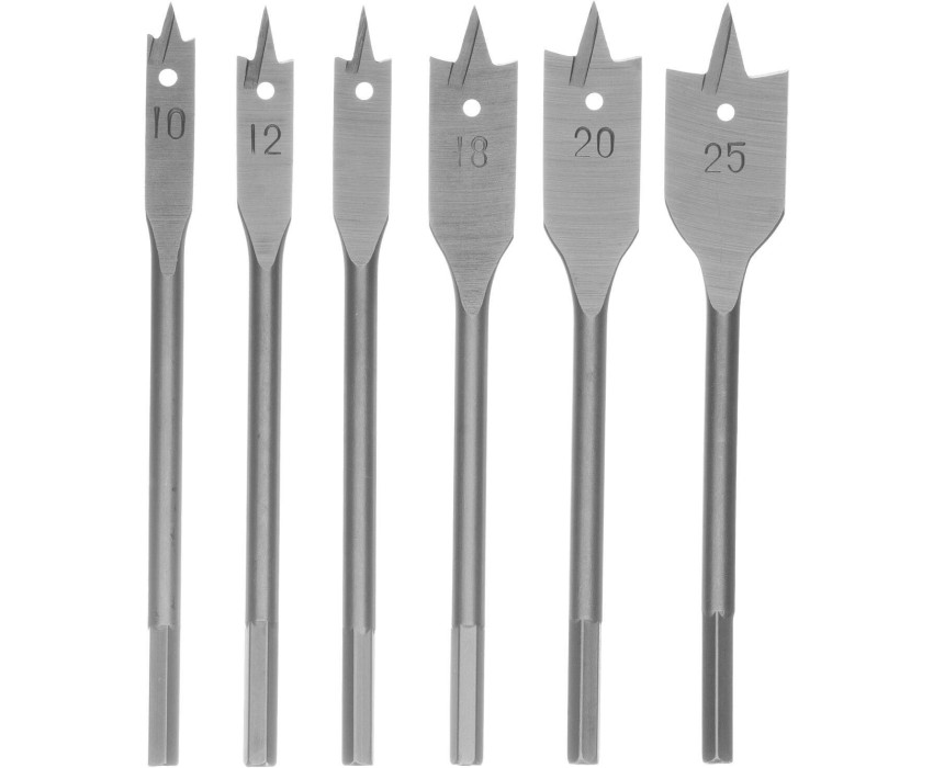 Набор сверл СИБРТЕХ Набор сверл перовых по дереву, 10-12-16-18-20-25 мм, 6 шт, шестигранный хвостовик 704155