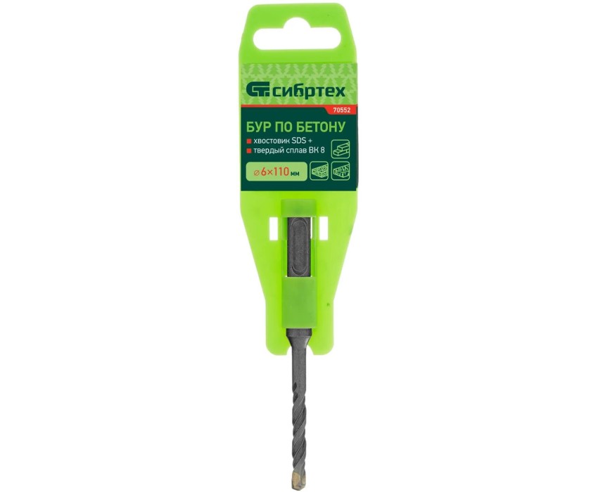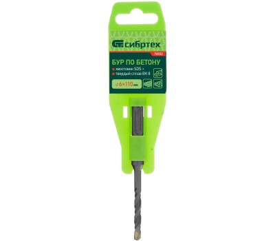 Бур по бетону Сибртех 70552 размером 6 х 110 мм предназначен для перфораторов с хвостовиком типа SDS Plus.