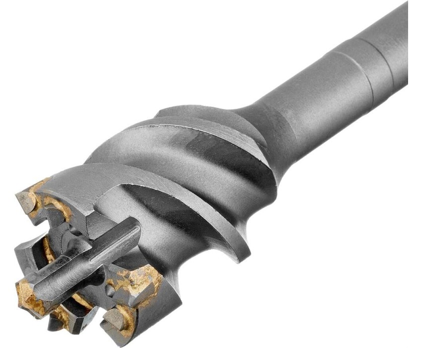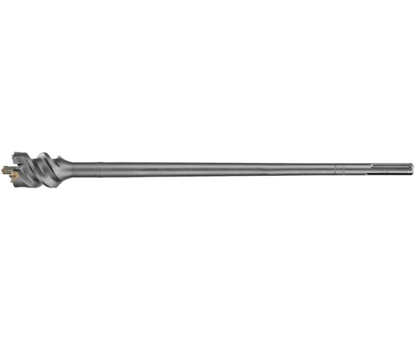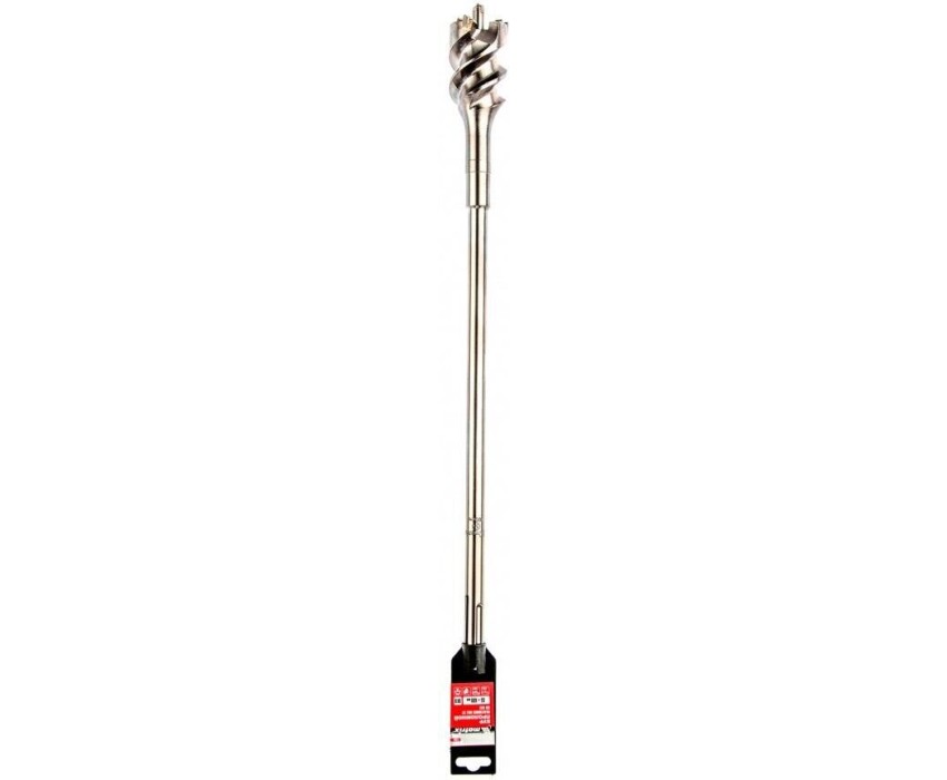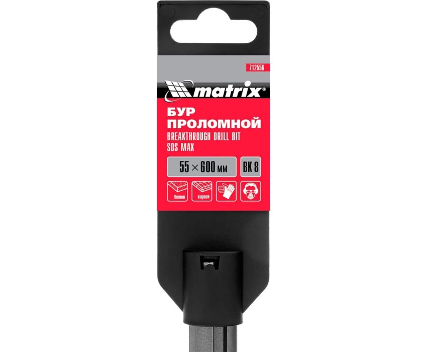 Проломной бур Matrix 712556 с хвостовиком SDS MAX позволяет получать сквозные отверстия диаметром 5,5 см и длиной 60 см в стенах из кирпича и бетона, полах, перекрытиях. Применяется совместно с высокомощными перфораторами SDS Max. Оптимален для прокладки газо- и водопровода, электрических коммуникаций, магистралей кондиционеров.ПреимуществаМаксимальная прочность и долговечность — тело бура изготовлено из легированной стали 40Х, режущая пластина выполнена из сверхтвердого сплава ВК8 80-90 HRC с добавлением кобальта.Эффективная работа — особая конструкция рабочей головки позволяет проходить армированный бетон без риска деформации бура.Высокое качество сверления — цельная конструкция оснастки позволяет минимизировать радиальное и торцевое биение в процессе работы, что исключает отклонение бура от заданной оси.Увеличенная производительность — глубокие спиральные канавки эффективно отводят шлам, обеспечивая высокую скорость работы независимо от глубины сверления.