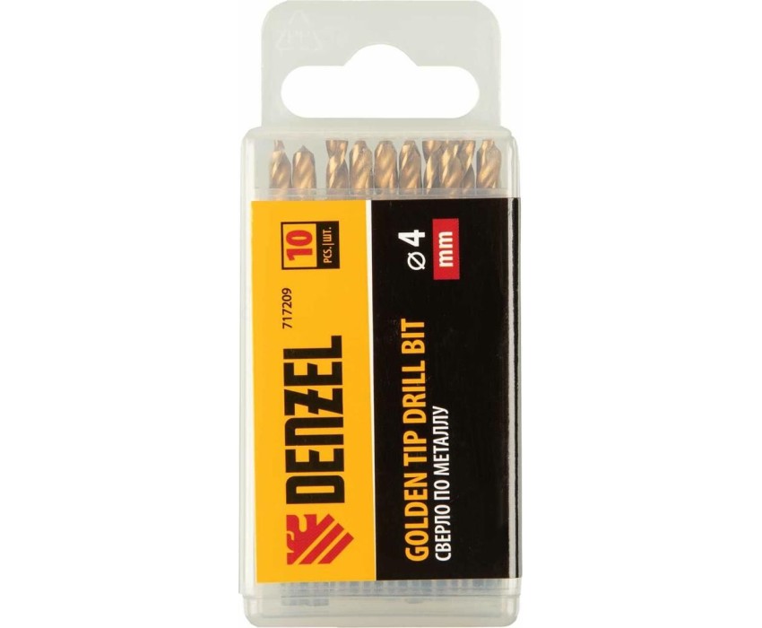 Сверло DENZEL Сверло по металлу, 4 мм, HSS-Tin, Golden Tip, 10 шт. 717209