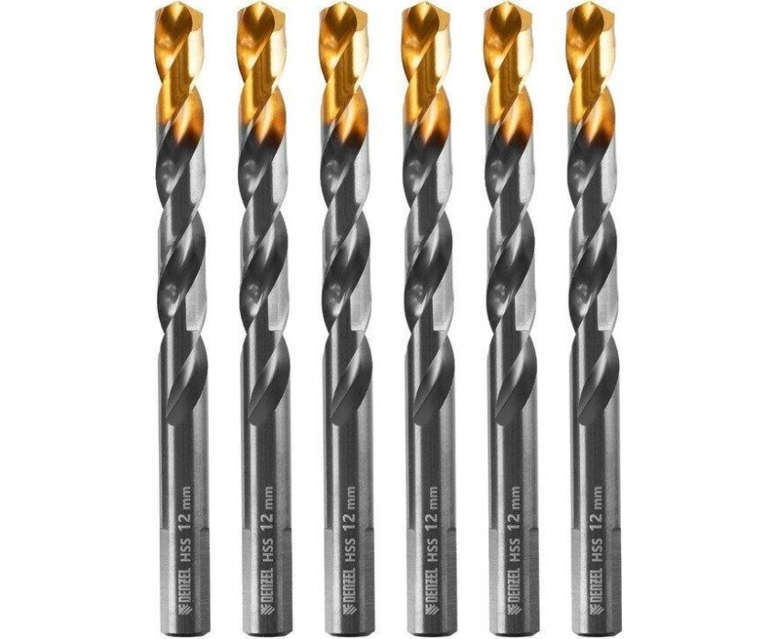 Сверло DENZEL Сверло по металлу, 12 мм, HSS-Tin, Golden Tip, 6 шт. 717224