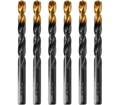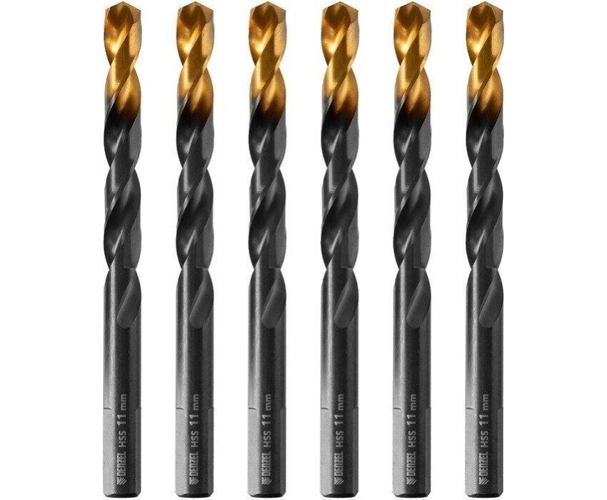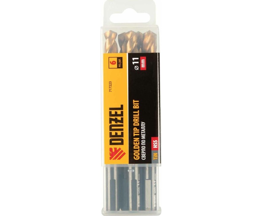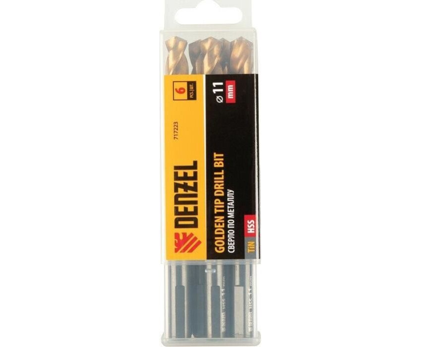 Сверло DENZEL Сверло по металлу, 11 мм, HSS-Tin, Golden Tip, 6 шт. 717223