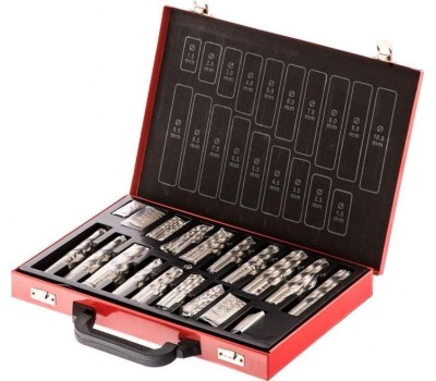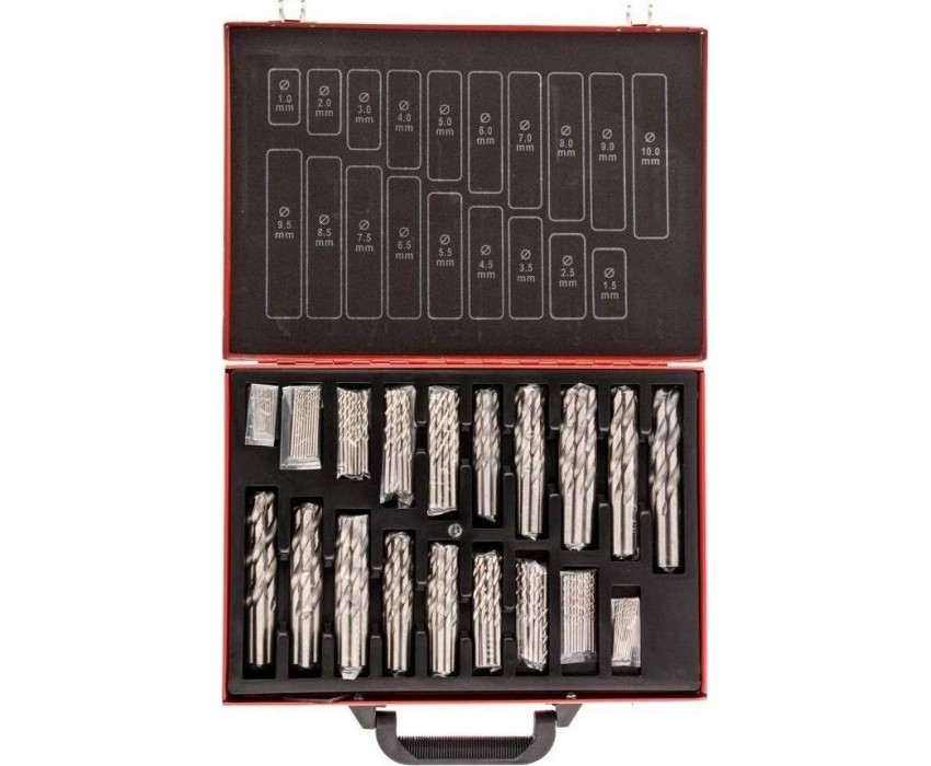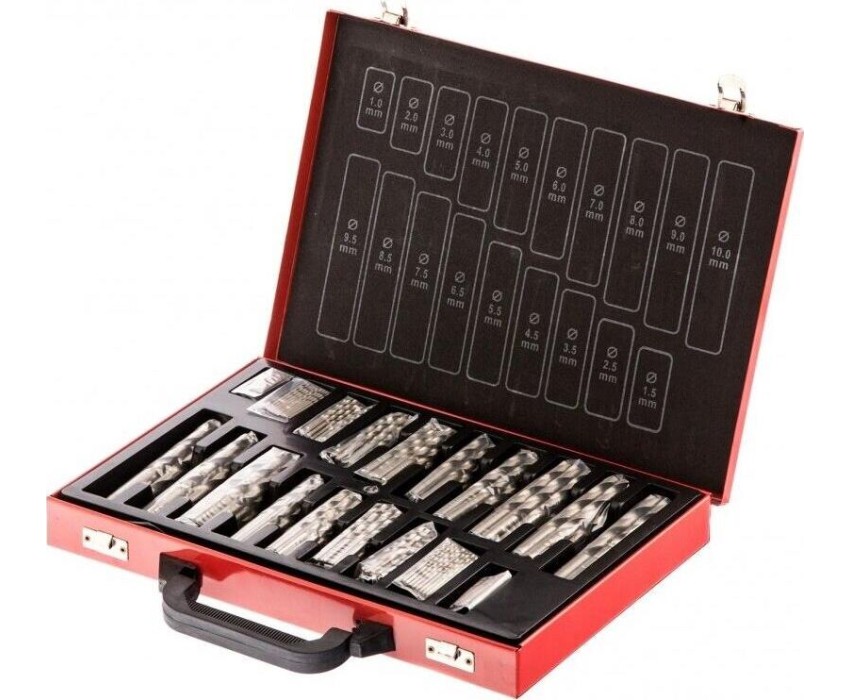 Набор Matrix 723170 включает в себя 170 сверл по металлу из стали HSS, диаметром 1-10 мм, упакованных в металлический кейс. Угол заточки сверл составляет 118°, поэтому они оптимальны для обработки черных металлов, стали, чугуна и твердой бронзы. Набор пригодится в быту и на строительной площадке.ПреимуществаПрочность и высокий ресурс — оснастка выполнена из быстрорежущей стали HSS, рабочие кромки закалены до твердости 62-64 HRC.Высокое качество исполнения — благодаря процедуре поэтапного шлифования набор полностью соответствуют заявленным размерам.Повышенная производительность — поверхность сверл отполирована, что снижает трение и обеспечивает эффективный отвод шлама.Совместимость со всеми типами патронов — сверла имеют универсальные цилиндрические хвостовики.Быстрый поиск нужной оснастки — на крышке кейса имеется маркировка с обозначением типоразмера оснастки.Комфортная работа — рабочая часть сверл сужается по направлению к хвостовику, поэтому их не заклинивает в процессе эксплуатации.Удобное хранение и транспортировка — набор поставляется в металлическом кейсе с ручкой.