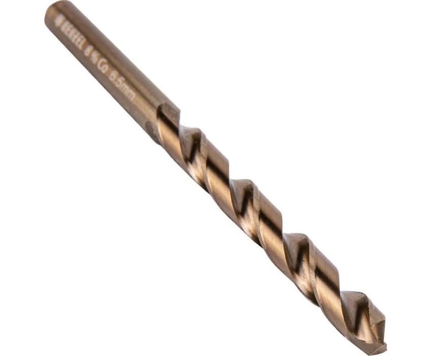 Кобальтовое сверло по металлу Denzel 71446 диаметром 6,5 мм, из стали HSS Co-8%, позволяет получать отверстия высокой точности в нержавеющей стали, цветных металлах, легированных и нелегированных сталях с пределом прочности до 1100 Н/мм2, а также в жестком пластике. Угол заточки 135° обеспечивает повышенную точность и чистоту сверления.ПреимуществаПовышенная стойкость к износу и перегреву — сверло изготовлено из наиболее качественной быстрорежущей стали М42 с 8%-ным содержанием кобальта.Точная и быстрая работа — шлифованный профиль обеспечивает эффективный отвод металлической стружки и позволяет добиться гладкого отверстия.Легкое засверливание — подточка поперечной кромки Split point повышает устойчивость сверла к нагрузкам и позволяет приступать к работе без предварительной разметки поверхности (накернивания).Универсальность — цилиндрический хвостовик совместим со всеми типами патронов.