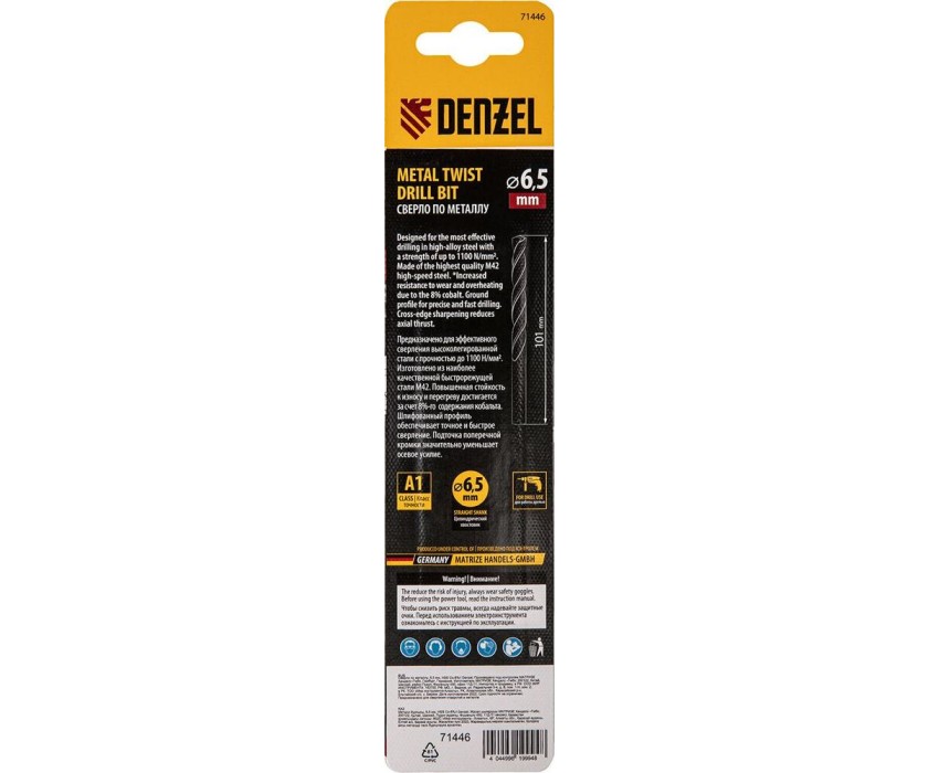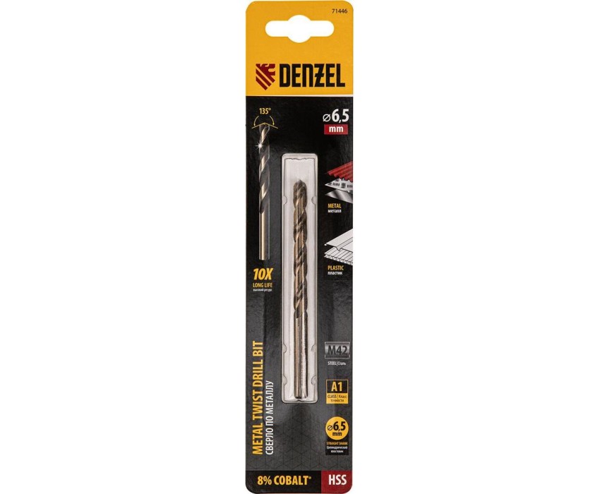 Сверло DENZEL Сверло по металлу, 6,5 мм, HSS Co-8%// 71446