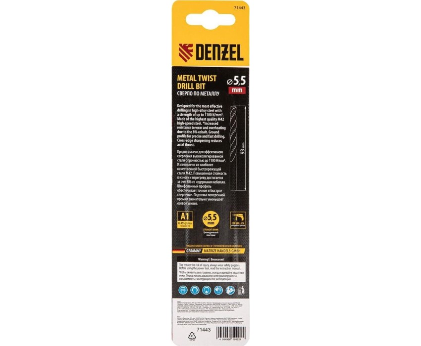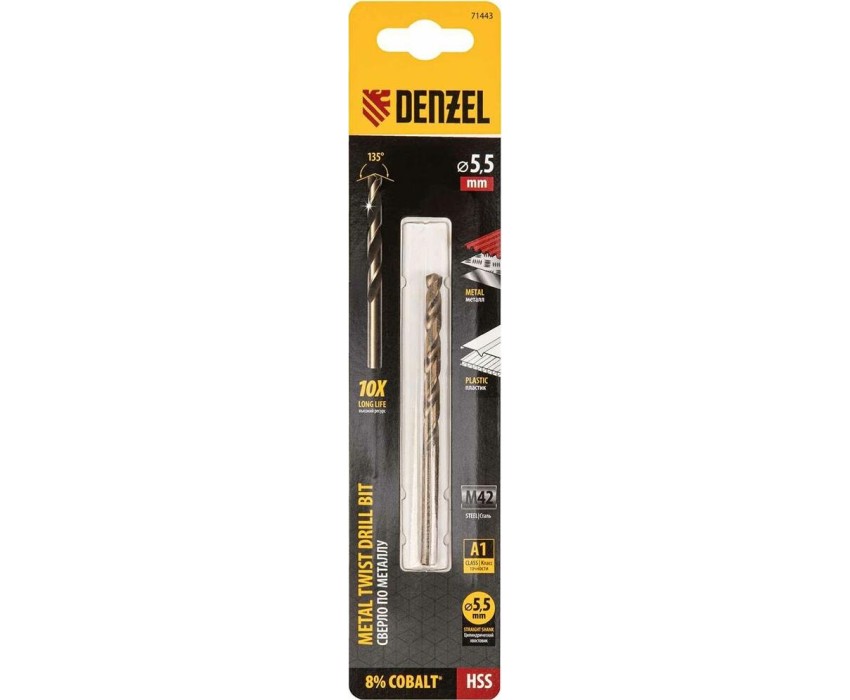 Сверло DENZEL Сверло по металлу, 5,5 мм, HSS Co-8%// 71443