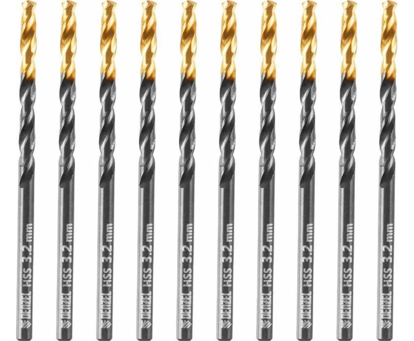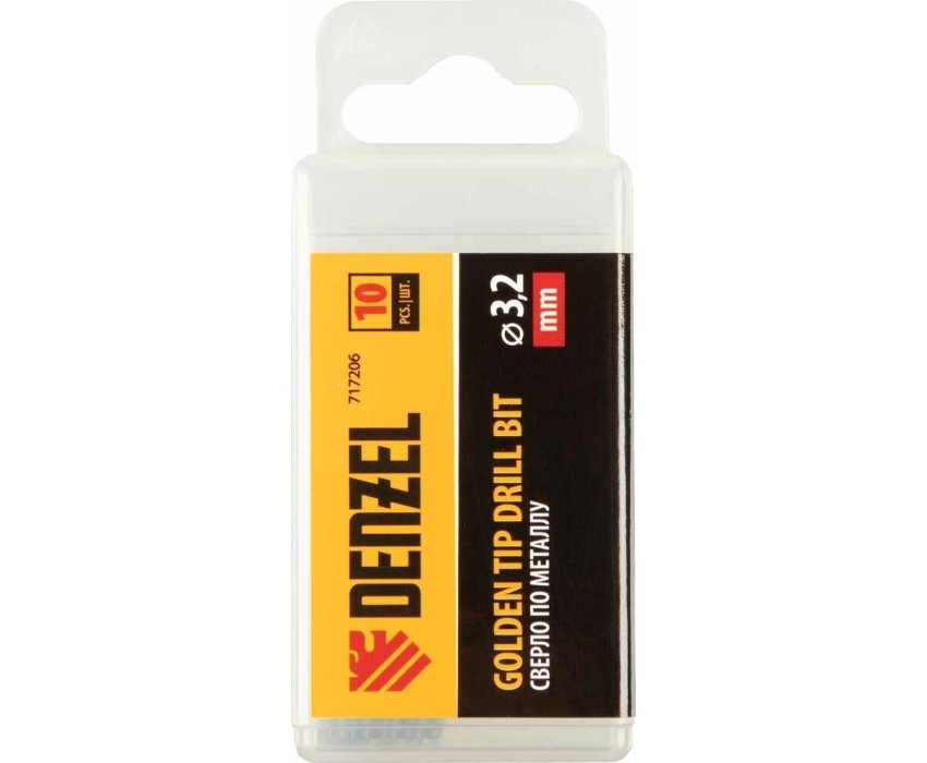 Сверло DENZEL Сверло по металлу, 3,2 мм, HSS-Tin, Golden Tip, 10 шт. 717206