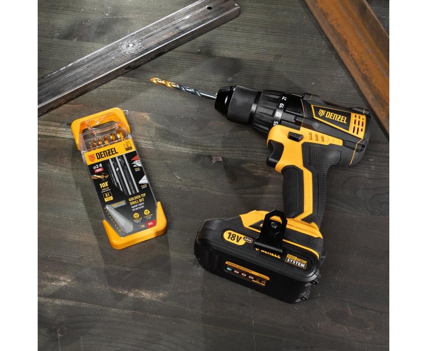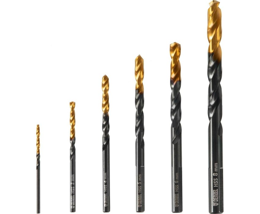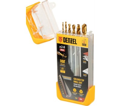 Набор сверл DENZEL Набор сверл по металлу, 2-3-4-5-6-8 мм, HSS-Tin, Golden Tip, 6 шт 72300