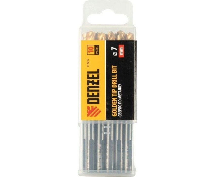 Сверло DENZEL Сверло по металлу, 7 мм, HSS-Tin, Golden Tip, 10 шт. 717217