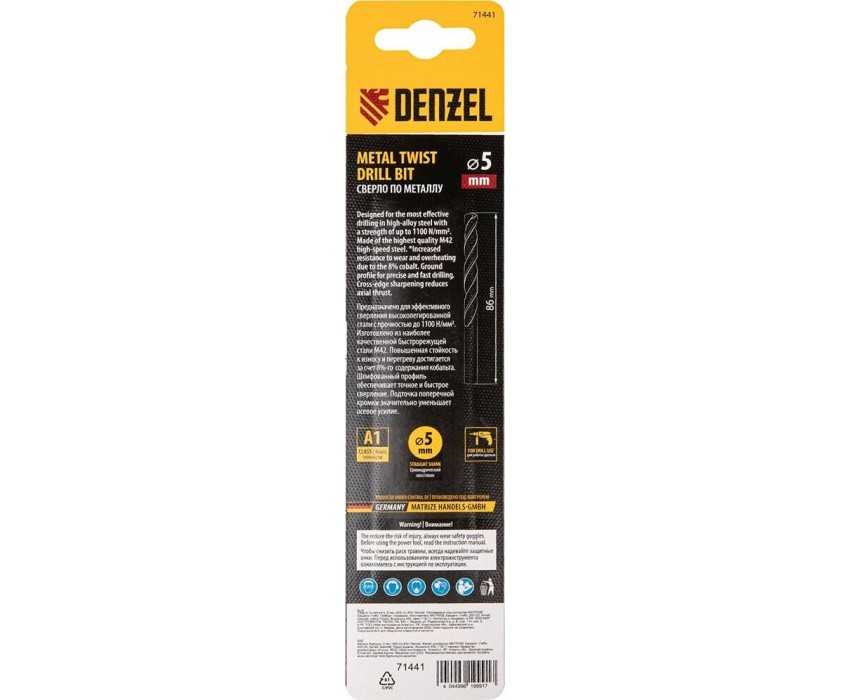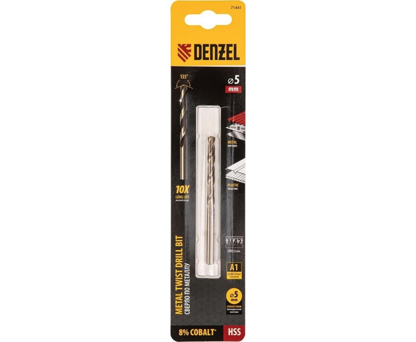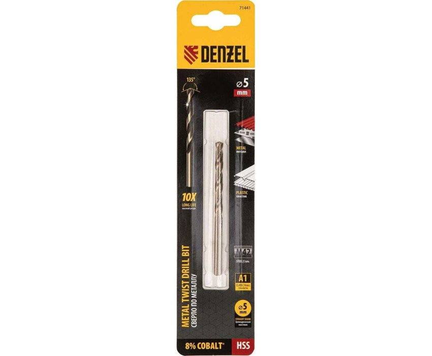 Сверло DENZEL Сверло по металлу, 5 мм, HSS Co-8%// 71441