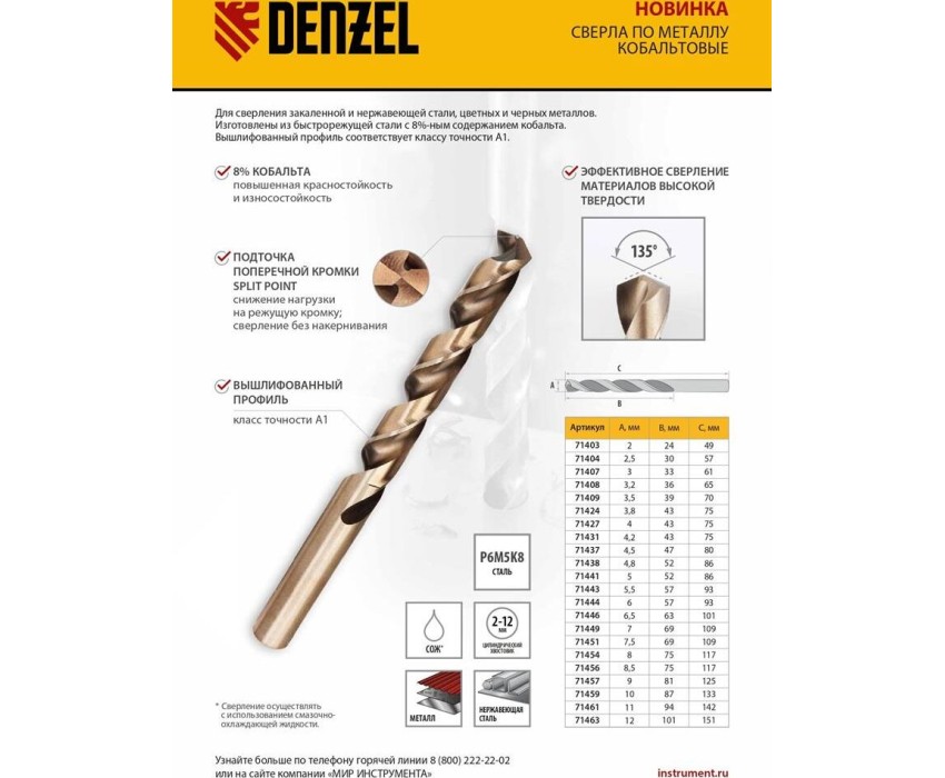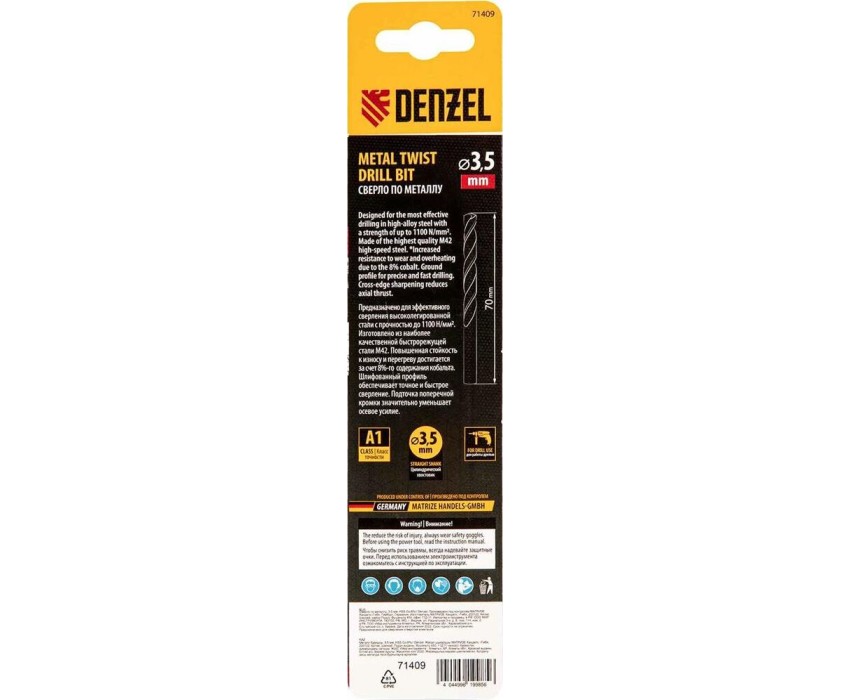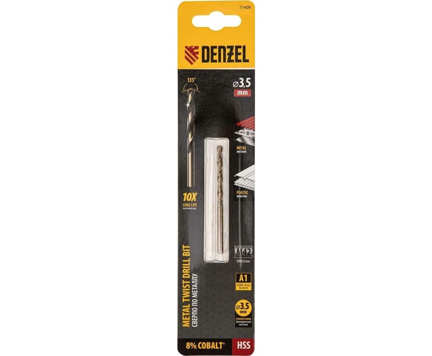 Сверло DENZEL Сверло по металлу, 3,5 мм, HSS Co-8%// 71409