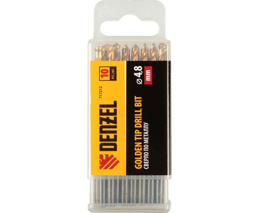 Сверло DENZEL Сверло по металлу, 4,8 мм, HSS-Tin, Golden Tip, 10 шт. 717212