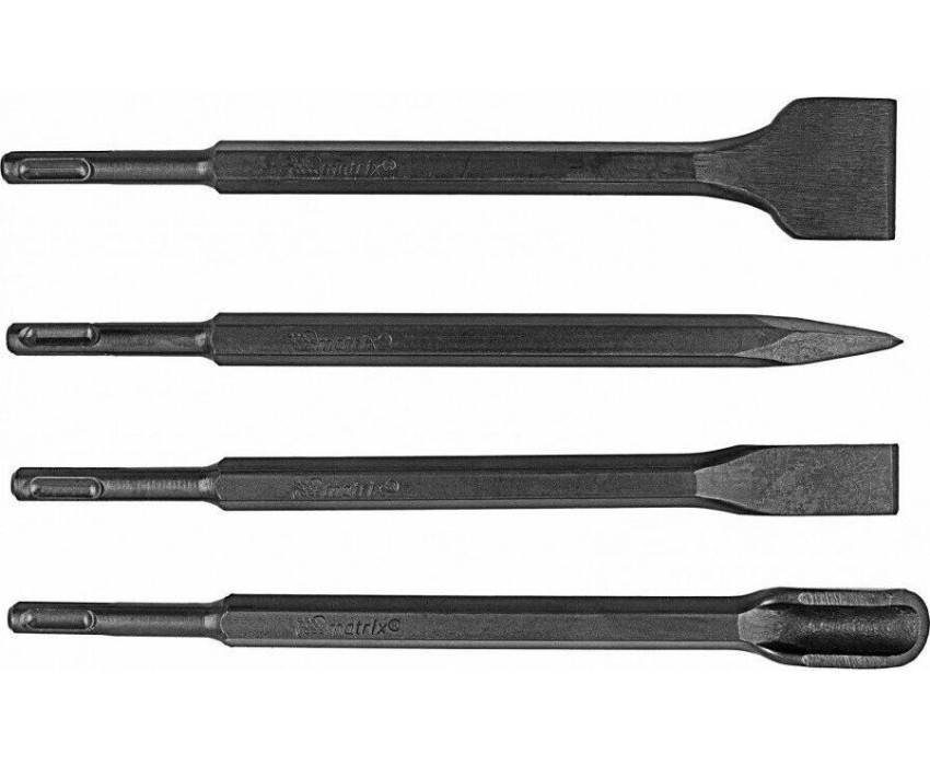 Набор буров MATRIX Набор буров по бетону, 6-8-10 х 160, 8-10-12 х 210, 10-12-14 х 260 мм, зубила 4 шт, SDS Plus 71098