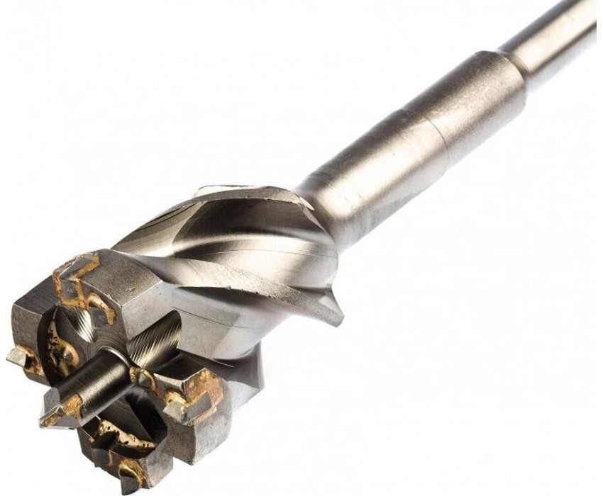 Проломной бур Matrix 712686 с хвостовиком SDS MAX позволяет получать сквозные отверстия диаметром 6,8 см и длиной 60 см в стенах из кирпича и бетона, полах, перекрытиях. Применяется совместно с высокомощными перфораторами SDS Max. Оптимален для прокладки газо- и водопровода, электрических коммуникаций, магистралей кондиционеров.ПреимуществаМаксимальная прочность и долговечность — тело бура изготовлено из легированной стали 40Х, режущая пластина выполнена из сверхтвердого сплава ВК8 80-90 HRC с добавлением кобальта.Эффективная работа — особая конструкция рабочей головки позволяет проходить армированный бетон без риска деформации бура.Высокое качество сверления — цельная конструкция оснастки позволяет минимизировать радиальное и торцевое биение в процессе работы, что исключает отклонение бура от заданной оси.Увеличенная производительность — глубокие спиральные канавки эффективно отводят шлам, обеспечивая высокую скорость работы независимо от глубины сверления.