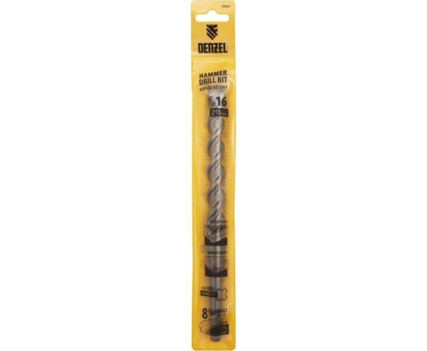 Бур DENZEL Бур по бетону, двойная спираль, три пылеотводящие кромки, 16 x 210 мм 705037