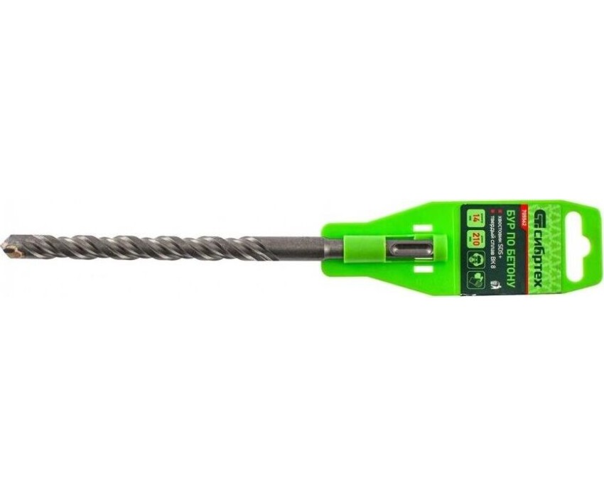 Бур по бетону Сибртех 705562 размером 14 х 210 мм предназначен для перфораторов с хвостовиком типа SDS Plus. Способен сверлить отверстия в материалах из бетона и кирпича, а также в искусственном и природном камне. Бур отлично подойдет для домашнего использования со средним объемом работ.ПреимуществаПрочность и износостойкость — режущая пластина пониженной пористости изготовлена из высококачественной стали ВК8 и закалена до твердости 87-90 HRC.Долговечность — корпус выполнен из легированной стали 40Х и термообработан — это обеспечивает одинаковую твердость всей спиральной части бура, благодаря чему он способен выдерживать динамические нагрузки.Защитное покрытие — бур не подвержен образованию коррозии, а значит, он дольше прослужит мастеру.Выгода приобретения — буры Сибртех отличаются не только оптимальным соотношением цены и качества, но и высоким ресурсом по сравнению с аналогами.